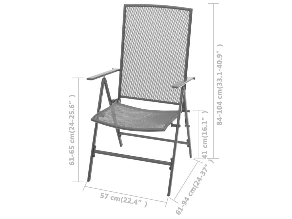 Tieto vysokokvalitné záhradné stoličky majú polohovateľné operadlo, ktoré sa dá nastaviť do 6 polôh. Pohodlne si sadnite a užívajte si príjemné chvíle odpočinku na týchto štýlových sklápacích stoličkách! Vysokokvalitné stoličky sú vyrobené z robustnej ocele ošetrenej elektroforetickou úpravou a práškovou povrchovou úpravou. Kovové stoličky sú mimoriadne pevné, trvácne a odolné voči poveternostným vplyvom a hrdzi. Vďaka tejto úprave sa navyše ľahko čistia a udržiavajú. Sieťovinový dizajn im dodáva elegantný vzhľad. Stoličky sa dajú poskladať, aby nezaberali veľa miesta, keď sa nepoužívajú.