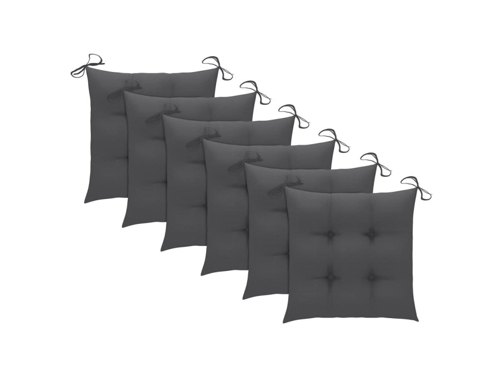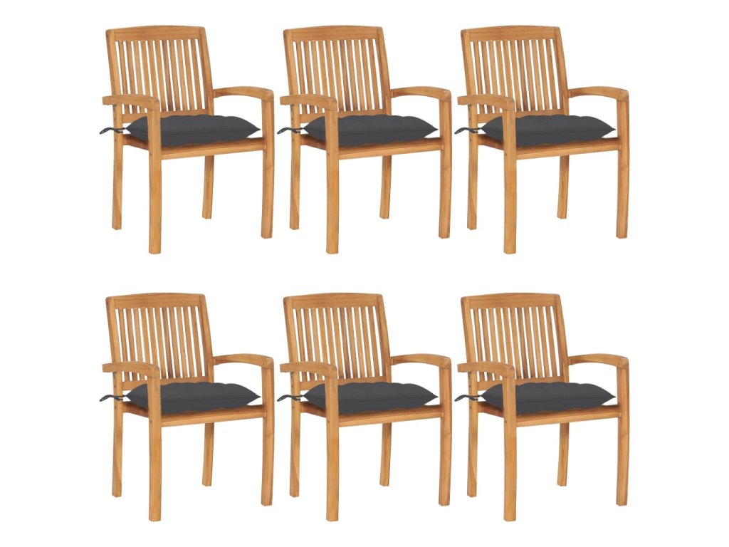 Táto sada tíkového nábytku je vyhotovená z mimoriadne trvácneho tvrdého tíkového dreva, ktoré bolo umelo vysušené v sušiarni a jeho povrch bol následne jemne obrúsený, aby získal hladký vzhľad. Tíkové drevo sa vyznačuje výnimočnou pevnosťou a odolnosťou voči poveternostným vplyvom, a tak predstavuje jeden z najvhodnejších materiálov na výrobu záhradného nábytku spomedzi všetkých ostatných druhov dreva. Ak si chcete zaobstarať záhradný nábytok, ktorý vám bude slúžiť dlhé roky, tíkové drevo je pre vás ako stvorené. Nevyžaduje si náročnú údržbu a dá sa ľahko očistiť vlhkou handričkou. Keď sa jedálenské stoličky nepoužívajú, stačí ich jednoducho poukladať na seba a odložiť, aby nezaberali veľa miesta. Navyše, pribalené vankúše poskytujú ďalšie pohodlie. Každý vankúš má 2 sady šnúrok, ktorými sa pevne pripevnia k stoličke.