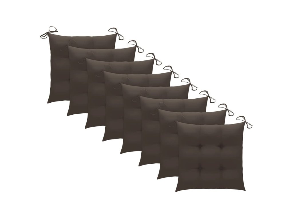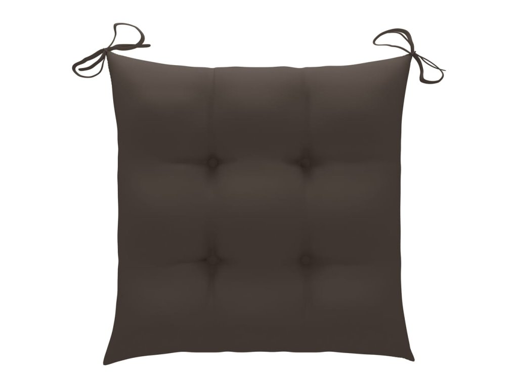 Táto sada tíkového nábytku je vyhotovená z mimoriadne trvácneho tvrdého tíkového dreva, ktoré bolo umelo vysušené v sušiarni a jeho povrch bol následne jemne obrúsený, aby získal hladký vzhľad. Tíkové drevo sa vyznačuje výnimočnou pevnosťou a odolnosťou voči poveternostným vplyvom, a tak predstavuje jeden z najvhodnejších materiálov na výrobu záhradného nábytku spomedzi všetkých ostatných druhov dreva. Ak si chcete zaobstarať záhradný nábytok, ktorý vám bude slúžiť dlhé roky, tíkové drevo je pre vás ako stvorené. Nevyžaduje si náročnú údržbu a dá sa ľahko očistiť vlhkou handričkou. Keď sa jedálenské stoličky nepoužívajú, stačí ich jednoducho poukladať na seba a odložiť, aby nezaberali veľa miesta. Navyše, pribalené vankúše poskytujú ďalšie pohodlie. Každý vankúš má 2 sady šnúrok, ktorými sa pevne pripevnia k stoličke.