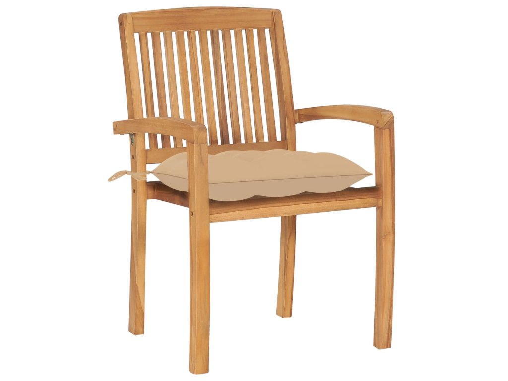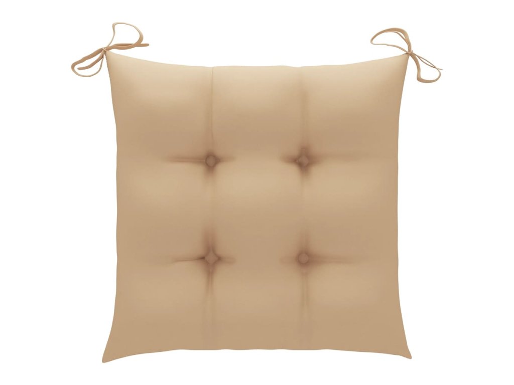 Táto sada tíkového nábytku je vyhotovená z mimoriadne trvácneho tvrdého tíkového dreva, ktoré bolo umelo vysušené v sušiarni a jeho povrch bol následne jemne obrúsený, aby získal hladký vzhľad. Tíkové drevo sa vyznačuje výnimočnou pevnosťou a odolnosťou voči poveternostným vplyvom, a tak predstavuje jeden z najvhodnejších materiálov na výrobu záhradného nábytku spomedzi všetkých ostatných druhov dreva. Ak si chcete zaobstarať záhradný nábytok, ktorý vám bude slúžiť dlhé roky, tíkové drevo je pre vás ako stvorené. Nevyžaduje si náročnú údržbu a dá sa ľahko očistiť vlhkou handričkou. Keď sa jedálenské stoličky nepoužívajú, stačí ich jednoducho poukladať na seba a odložiť, aby nezaberali veľa miesta. Navyše, pribalené vankúše poskytujú ďalšie pohodlie. Každý vankúš má 2 sady šnúrok, ktorými sa pevne pripevnia k stoličke.
