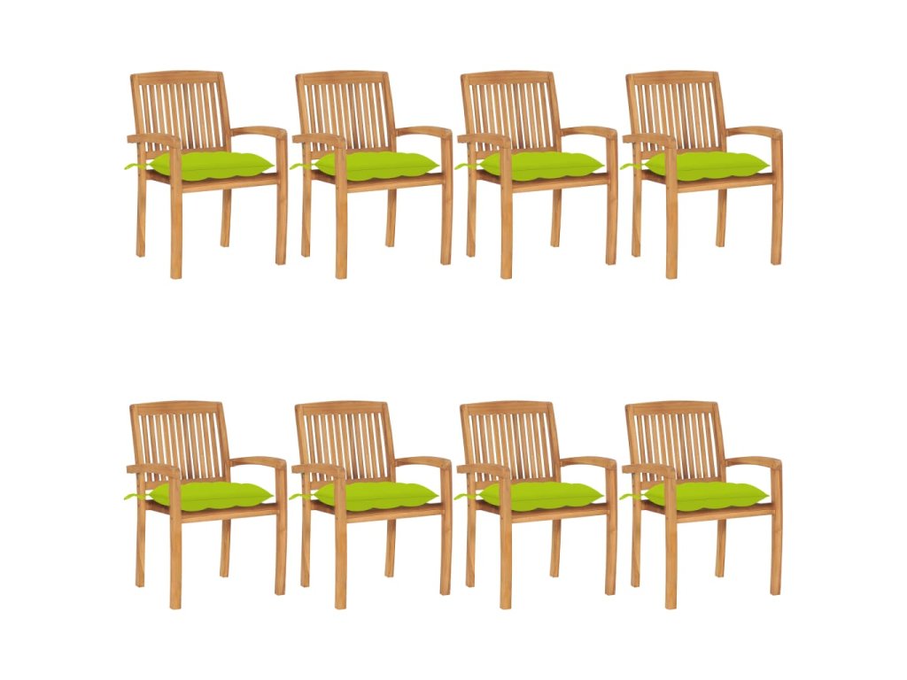 Táto sada tíkového nábytku je vyhotovená z mimoriadne trvácneho tvrdého tíkového dreva, ktoré bolo umelo vysušené v sušiarni a jeho povrch bol následne jemne obrúsený, aby získal hladký vzhľad. Tíkové drevo sa vyznačuje výnimočnou pevnosťou a odolnosťou voči poveternostným vplyvom, a tak predstavuje jeden z najvhodnejších materiálov na výrobu záhradného nábytku spomedzi všetkých ostatných druhov dreva. Ak si chcete zaobstarať záhradný nábytok, ktorý vám bude slúžiť dlhé roky, tíkové drevo je pre vás ako stvorené. Nevyžaduje si náročnú údržbu a dá sa ľahko očistiť vlhkou handričkou. Keď sa jedálenské stoličky nepoužívajú, stačí ich jednoducho poukladať na seba a odložiť, aby nezaberali veľa miesta. Navyše, pribalené vankúše poskytujú ďalšie pohodlie. Každý vankúš má 2 sady šnúrok, ktorými sa pevne pripevnia k stoličke.