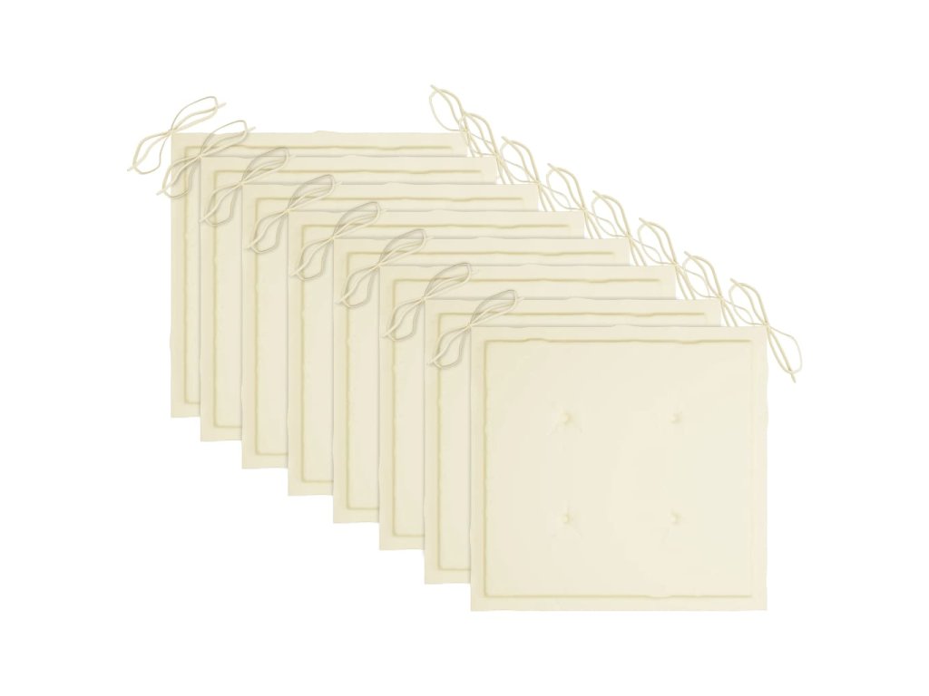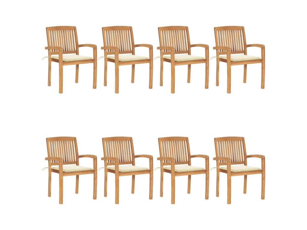 Táto sada tíkového nábytku je vyhotovená z mimoriadne trvácneho tvrdého tíkového dreva, ktoré bolo umelo vysušené v sušiarni a jeho povrch bol následne jemne obrúsený, aby získal hladký vzhľad. Tíkové drevo sa vyznačuje výnimočnou pevnosťou a odolnosťou voči poveternostným vplyvom, a tak predstavuje jeden z najvhodnejších materiálov na výrobu záhradného nábytku spomedzi všetkých ostatných druhov dreva. Ak si chcete zaobstarať záhradný nábytok, ktorý vám bude slúžiť dlhé roky, tíkové drevo je pre vás ako stvorené. Nevyžaduje si náročnú údržbu a dá sa ľahko očistiť vlhkou handričkou. Keď sa jedálenské stoličky nepoužívajú, stačí ich jednoducho poukladať na seba a odložiť, aby nezaberali veľa miesta. Navyše, pribalené vankúše poskytujú ďalšie pohodlie. Každý vankúš má 2 sady šnúrok, ktorými sa pevne pripevnia k stoličke.