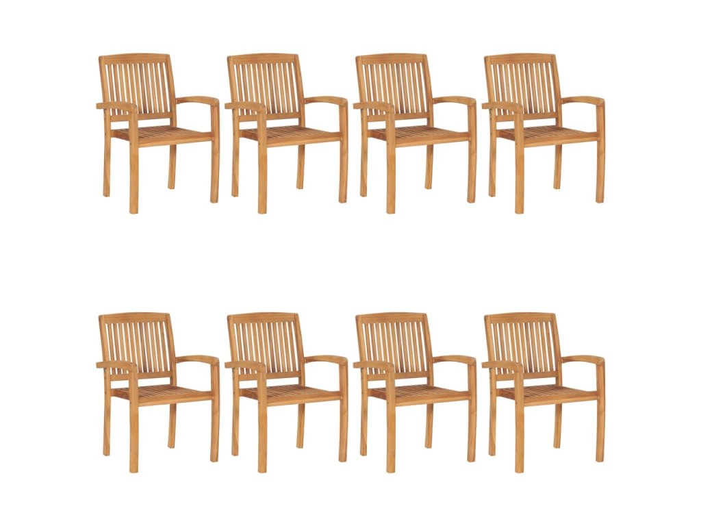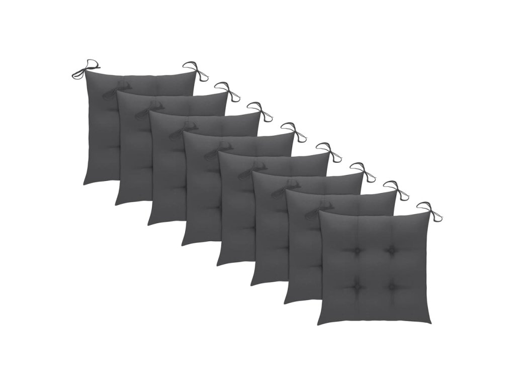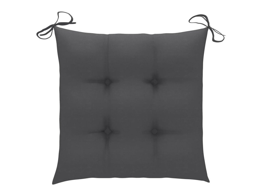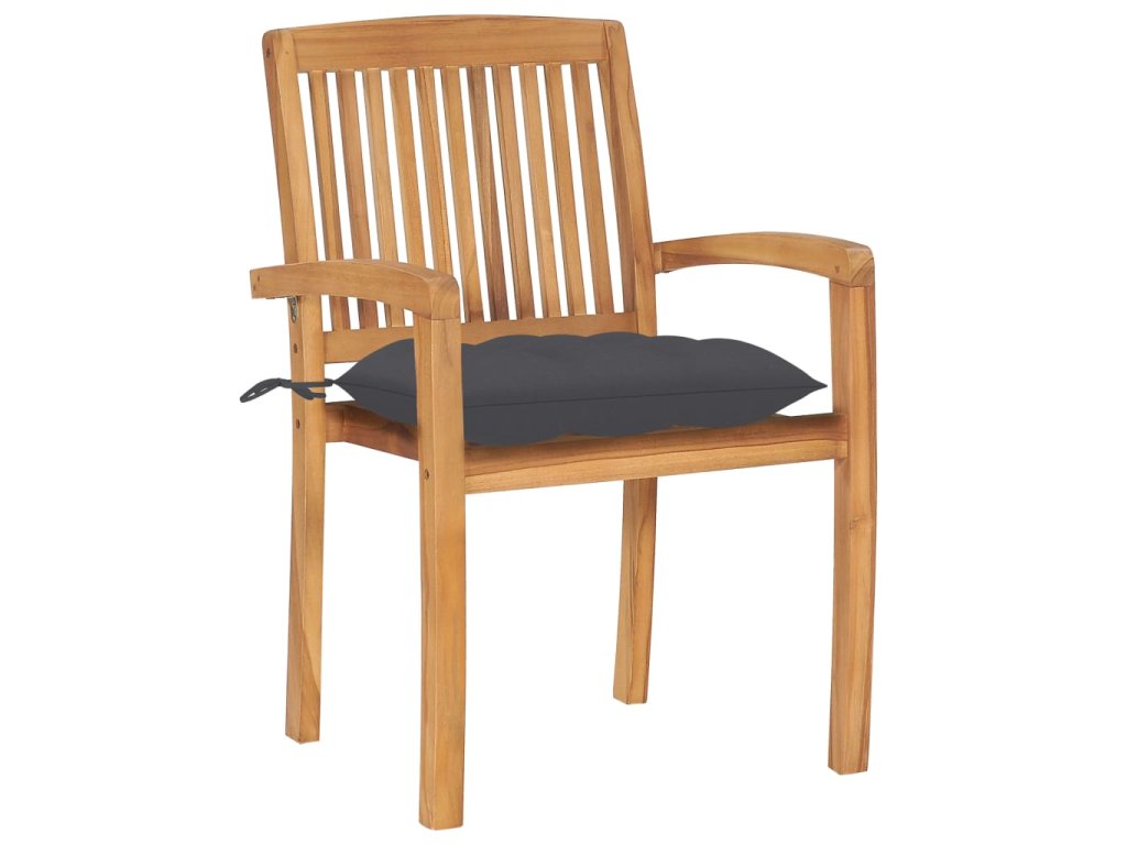 Táto sada tíkového nábytku je vyhotovená z mimoriadne trvácneho tvrdého tíkového dreva, ktoré bolo umelo vysušené v sušiarni a jeho povrch bol následne jemne obrúsený, aby získal hladký vzhľad. Tíkové drevo sa vyznačuje výnimočnou pevnosťou a odolnosťou voči poveternostným vplyvom, a tak predstavuje jeden z najvhodnejších materiálov na výrobu záhradného nábytku spomedzi všetkých ostatných druhov dreva. Ak si chcete zaobstarať záhradný nábytok, ktorý vám bude slúžiť dlhé roky, tíkové drevo je pre vás ako stvorené. Nevyžaduje si náročnú údržbu a dá sa ľahko očistiť vlhkou handričkou. Keď sa jedálenské stoličky nepoužívajú, stačí ich jednoducho poukladať na seba a odložiť, aby nezaberali veľa miesta. Navyše, pribalené vankúše poskytujú ďalšie pohodlie. Každý vankúš má 2 sady šnúrok, ktorými sa pevne pripevnia k stoličke.