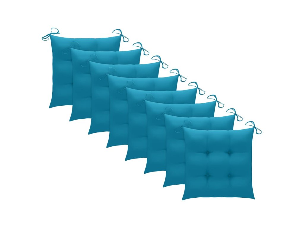 Táto sada tíkového nábytku je vyhotovená z mimoriadne trvácneho tvrdého tíkového dreva, ktoré bolo umelo vysušené v sušiarni a jeho povrch bol následne jemne obrúsený, aby získal hladký vzhľad. Tíkové drevo sa vyznačuje výnimočnou pevnosťou a odolnosťou voči poveternostným vplyvom, a tak predstavuje jeden z najvhodnejších materiálov na výrobu záhradného nábytku spomedzi všetkých ostatných druhov dreva. Ak si chcete zaobstarať záhradný nábytok, ktorý vám bude slúžiť dlhé roky, tíkové drevo je pre vás ako stvorené. Nevyžaduje si náročnú údržbu a dá sa ľahko očistiť vlhkou handričkou. Keď sa jedálenské stoličky nepoužívajú, stačí ich jednoducho poukladať na seba a odložiť, aby nezaberali veľa miesta. Navyše, pribalené vankúše poskytujú ďalšie pohodlie. Každý vankúš má 2 sady šnúrok, ktorými sa pevne pripevnia k stoličke.