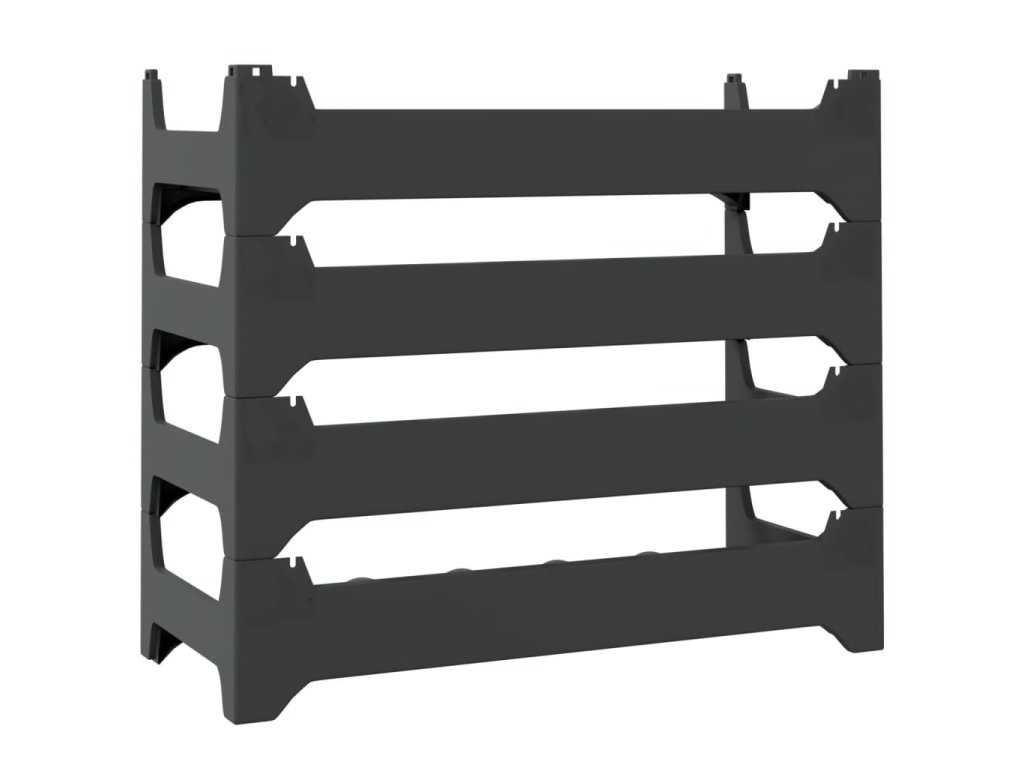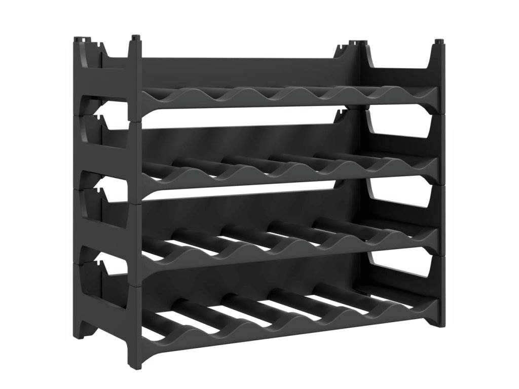 - Stohovateľné prevedenie: Poličky držiaka na fľaše sa môžu pre úsporu miesta pevne stohovať na seba.