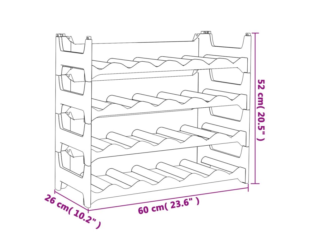 - Stabilný materiál: Polica na víno je vyrobená z polypropylénu (PP), ktorý je odolný voči UV žiareniu, poveternostným vplyvom a stabilný, aby bola zaistená bezpečnosť vašich vín.