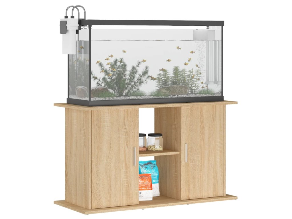 - Funkcia skladovania: Akváriová skrinka má dostatok úložného priestoru, horná časť je určená na umiestnenie akvária a priehradky a police sú vhodné na uloženie krmiva pre ryby, sieťky, dezinfekčných prostriedkov, prípravku na úpravu vody a iných predmetov.