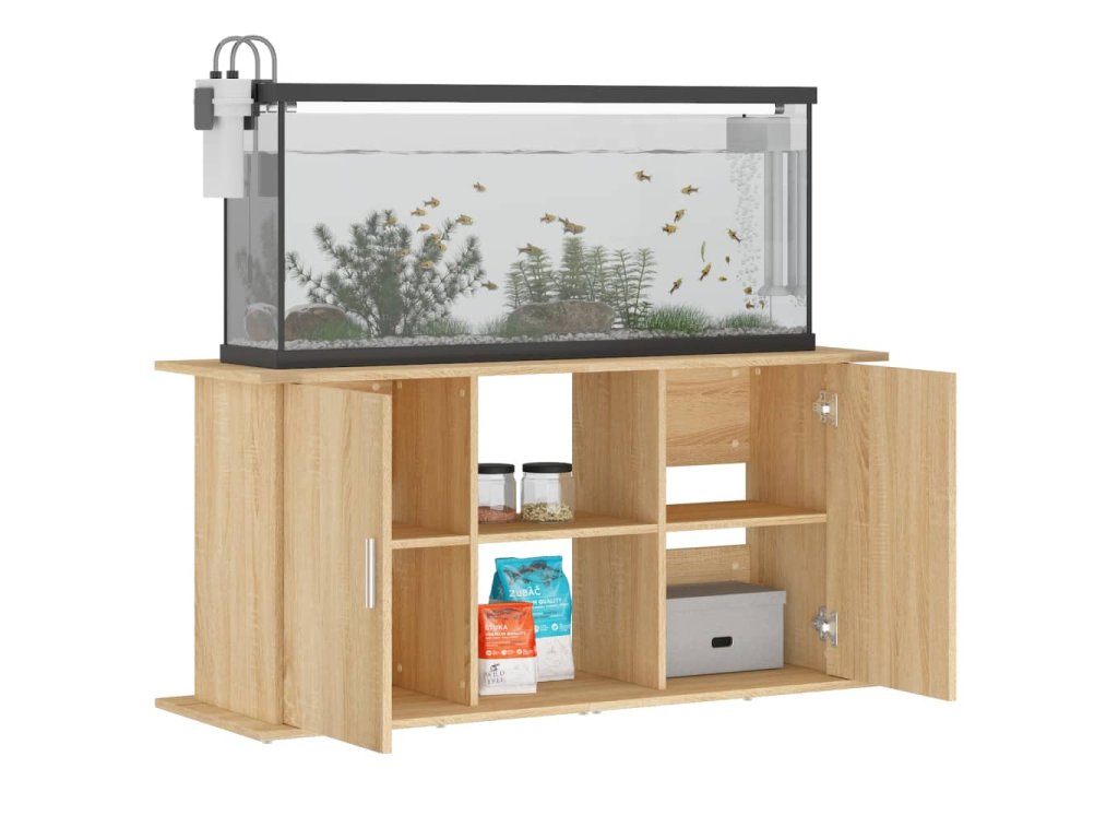 - Funkcia skladovania: Akváriová skrinka má dostatok úložného priestoru, horná časť je určená na umiestnenie akvária a priehradky a police sú vhodné na uloženie krmiva pre ryby, sieťky, dezinfekčných prostriedkov, prípravku na úpravu vody a iných predmetov.
