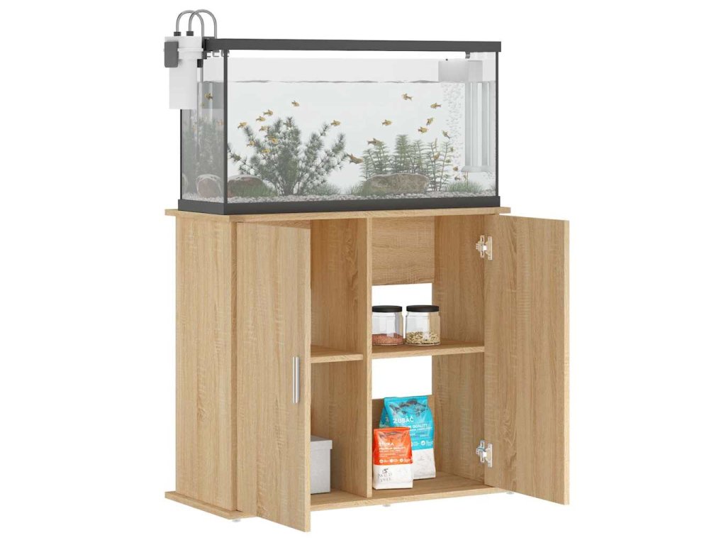 - Funkcia skladovania: Akváriová skrinka má dostatok úložného priestoru, horná časť je určená na umiestnenie akvária a 4 priehradky s dvierkami sú vhodné na uloženie krmiva pre ryby, sieťky, dezinfekčných prostriedkov, prípravku na úpravu vody a iných predmetov.