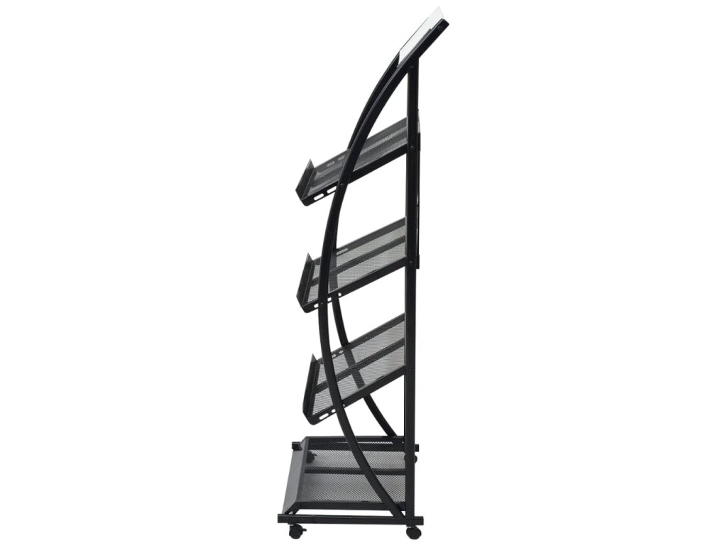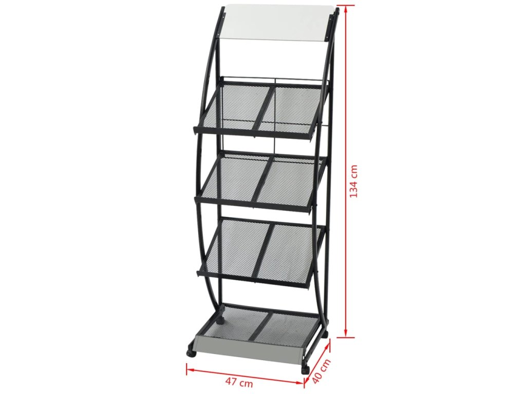 Štyri veľké priehradky ponúkajú dostatok priestoru na zobrazenie A4 brožúr, kníh alebo časopisov vedľa seba. Môžete si vytlačiť či prilepiť logo vašej firmy na vrchnú tabuľu. Vďaka kolieskam sa ľahko presúva. Svojim moderným dizajnom sa hodí do takmer akéhokoľvek interiéru. Stojan môžete umiestniť do kancelárie, čakárne, obývacej izby alebo spálne.