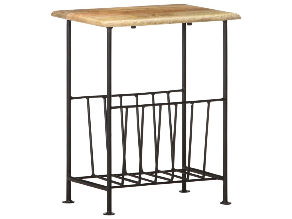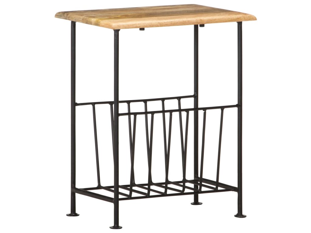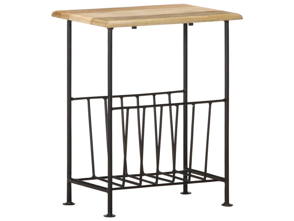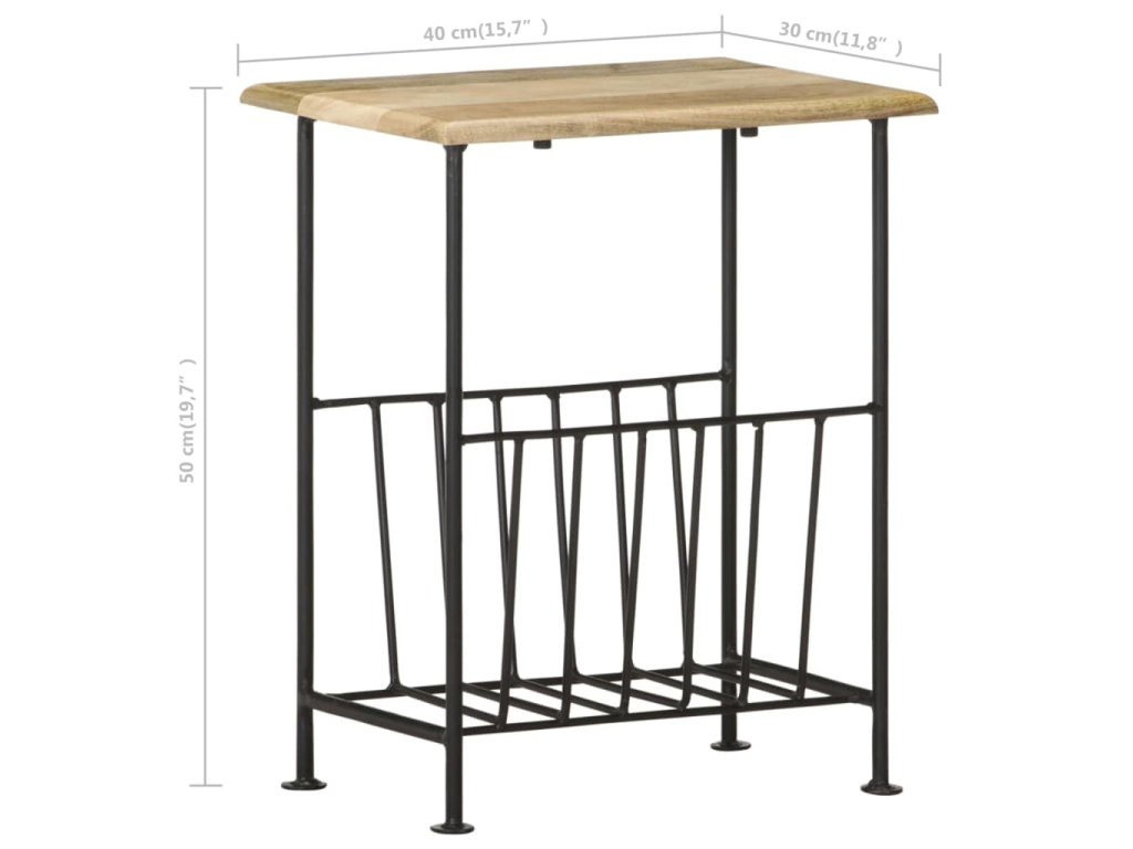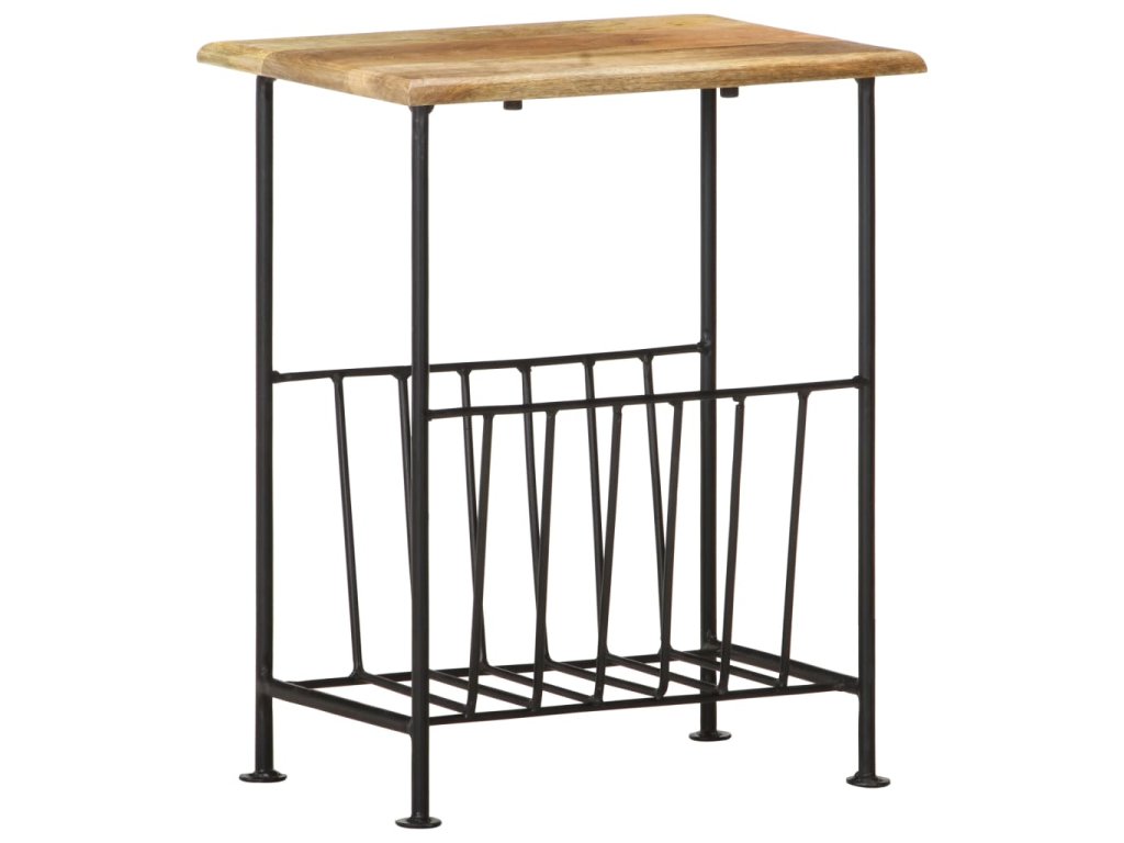 Stojan na časopisy pozostáva z dosky z mangového masívu a oceľovej základne s práškovou povrchovou úpravou, a tak je skutočne pevný a trvácny. Vďaka remeselnému spracovaniu a krásnej textúre dreva je každý kus nábytku jedinečný a trochu odlišný od ostatných. Stojan na časopisy navyše poslúži aj ako príručný stolík, nočný stolík či stolík do obývačky. Držiak na časopisy sa jednoducho montuje.