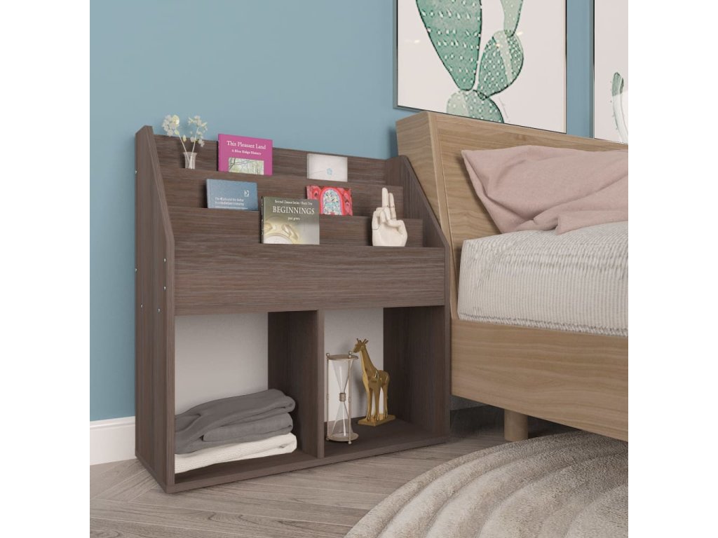 Organizér na detské knihy je vyrobený z kvalitného kompozitného dreva, a preto je mimoriadne trvácny, stabilný a má dlhú životnosť. Knižnica má 3 priečinky, ktoré poskytujú dostatok priestoru na obľúbené knihy vašich detí, a do dvoch veľkých otvorených priečinkov môžete umiestniť skladacie boxy. Skrinka na časopisy sa navyše dá ľahko očistiť navlhčenou handričkou.