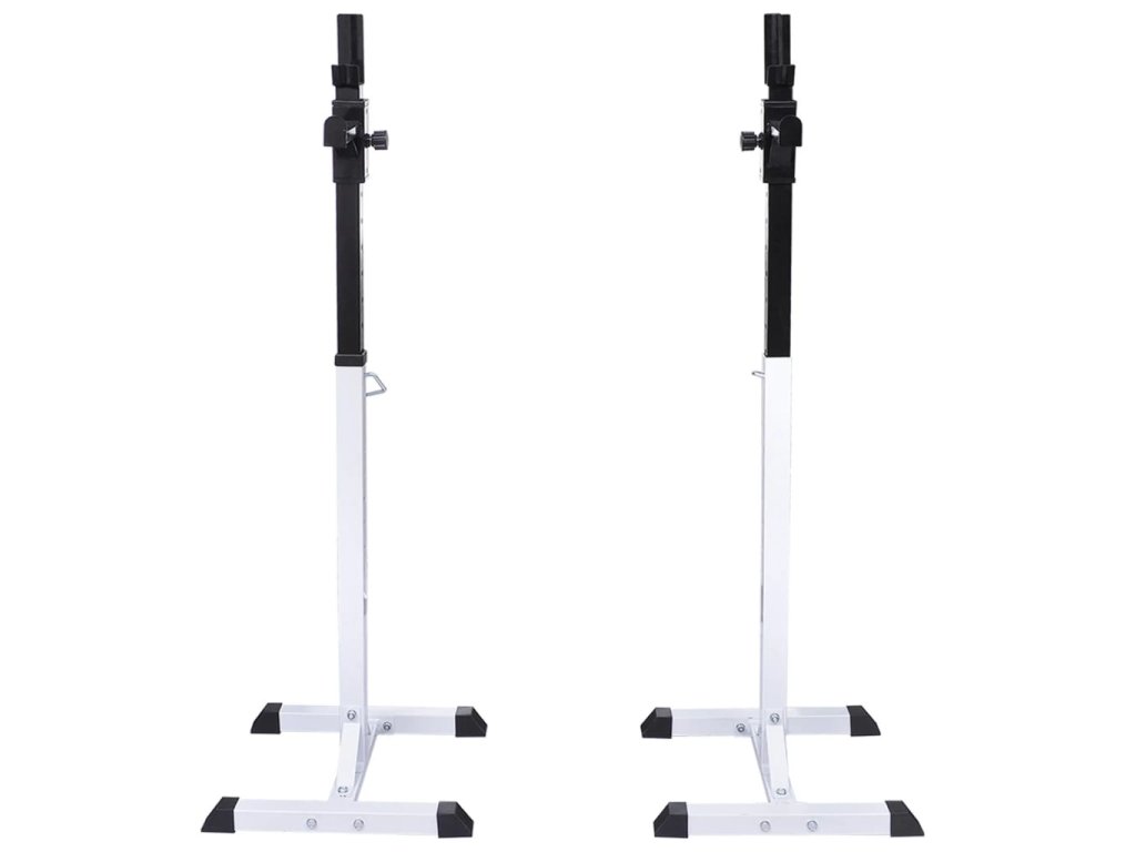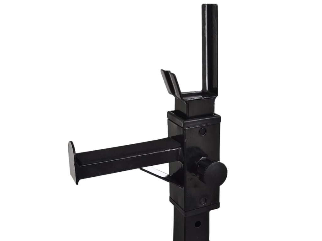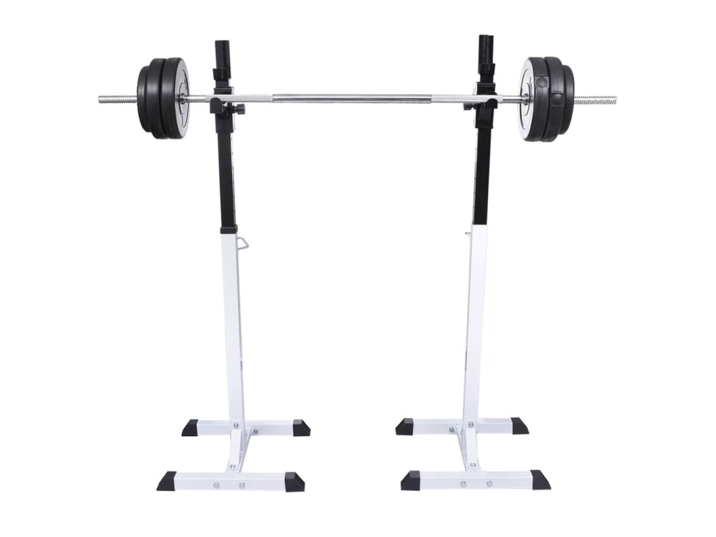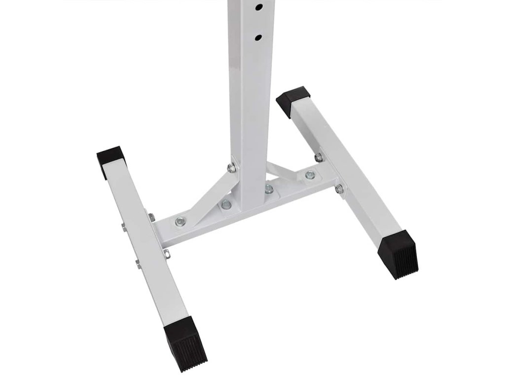 Tento stabilný stojan na činku je vhodný pre obojručné činky s priemerom tyče približne 45-50 mm. Má robustnú oceľovú konštrukciu s maximálnou nosnosťou 80 kg. Stojan je výškovo nastaviteľný a vhodný pre takmer akúkoľvek veľkosť tela a pre rôzne cviky. Okrem toho je kompaktný a šetrí priestor.