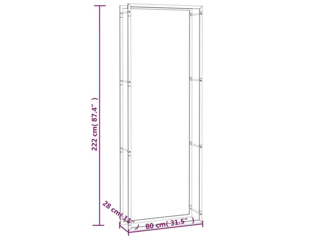 - Odolný materiál: Tento držiak na palivové drevo je vyrobený z čiernej práškovej ocele, ktorá je trvácna, pevná a odolná voči poveternostným vplyvom.