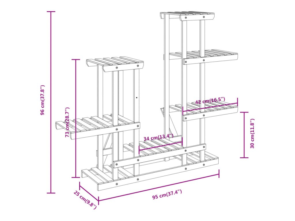 - Odolné jedľové drevo: Tento stojan na rastliny je vyrobený z jedľového dreva, ktoré je pevné a trvácne, čo zaručuje dlhé roky používania. Okrem starostlivo karbonizovaného remeselného spracovania je tento drevený stojan na kvety skvelý aj vďaka odolnosti voči vlhkosti a poveternostným vplyvom.
