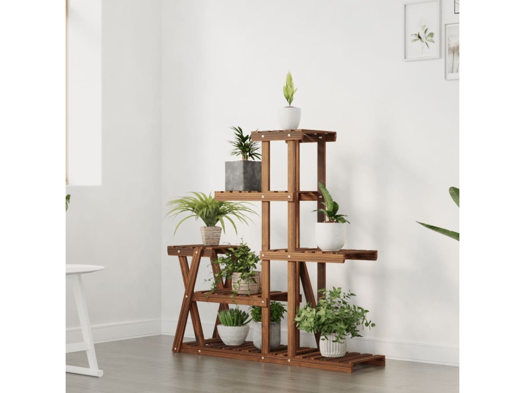 - Odolné jedľové drevo: Tento stojan na rastliny je vyrobený z jedľového dreva, ktoré je pevné a trvácne, čo zaručuje dlhé roky používania. Okrem starostlivo karbonizovaného remeselného spracovania je tento drevený stojan na kvety skvelý aj vďaka odolnosti voči vlhkosti a poveternostným vplyvom.