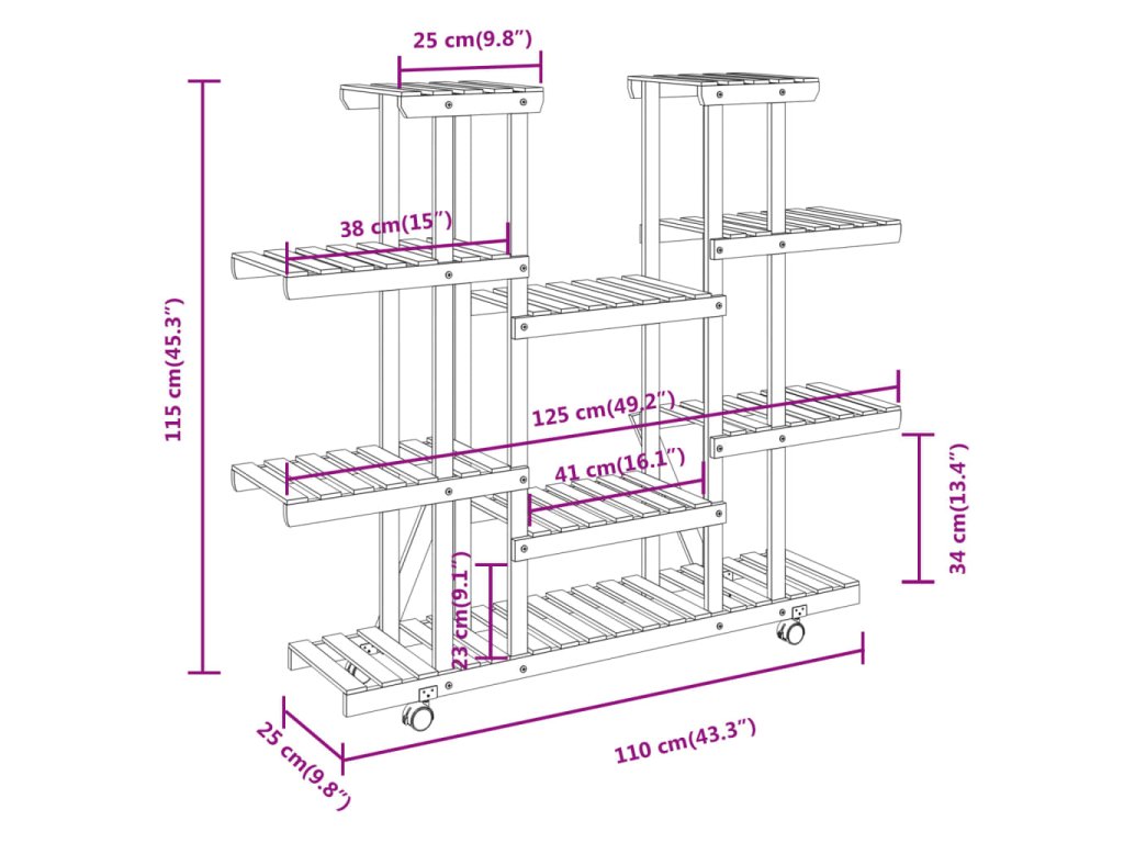 - Otočné kolieska: Vďaka kolieskam otočným o 360 stupňov možno police na rastliny na kolieskach flexibilne premiestňovať.