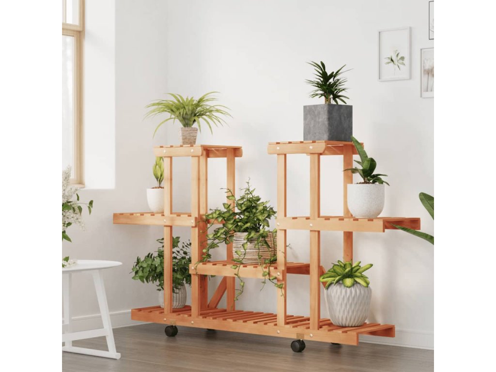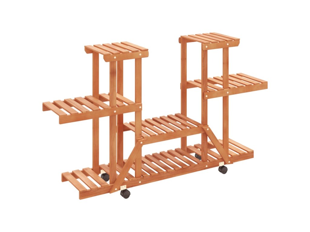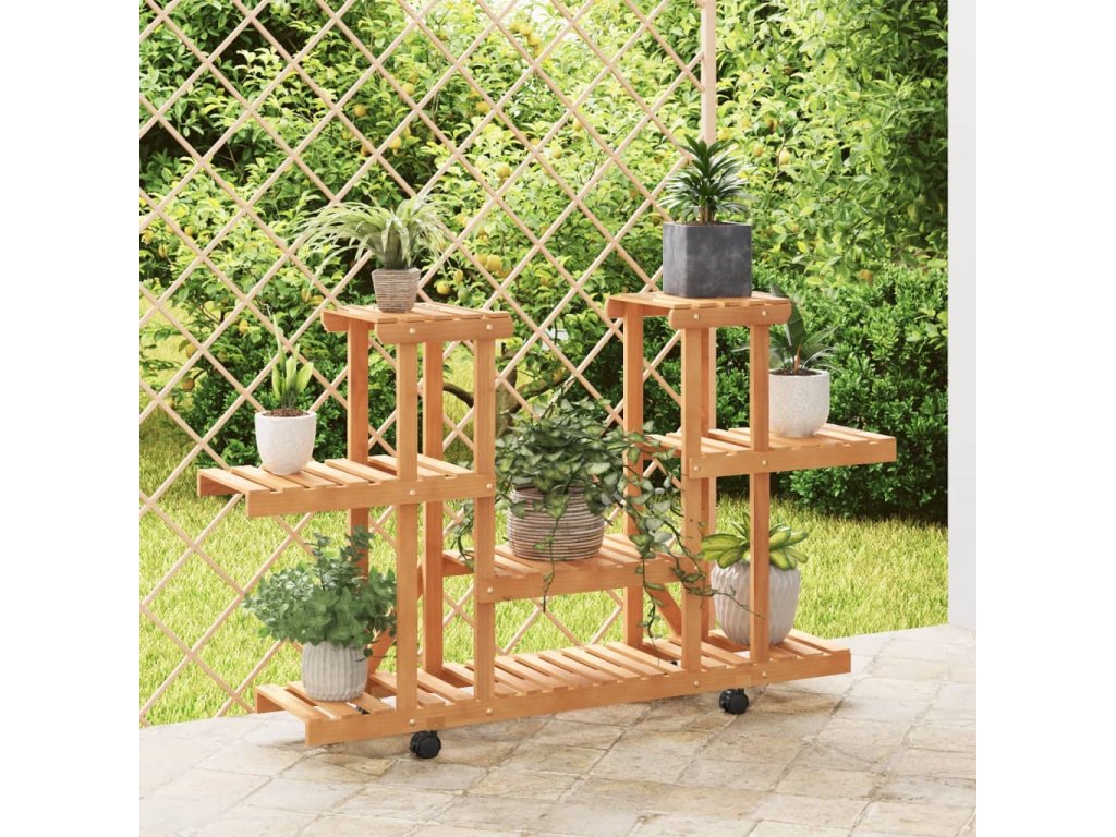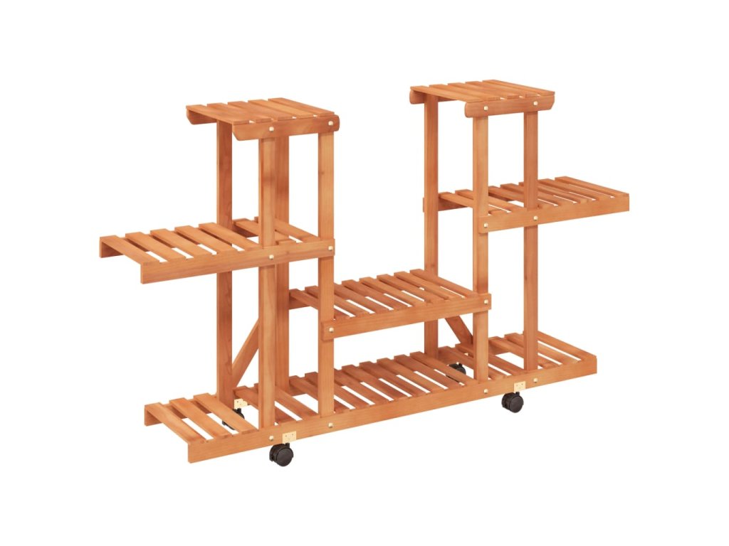Tento drevený podstavec na kvetináče s kolieskami je skvelou voľbou pre umiestnenie a vystavenie vašich rastlín a iných dekoratívnych predmetov.