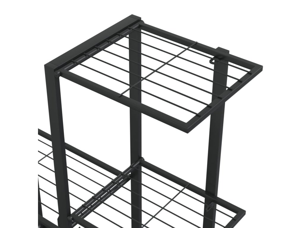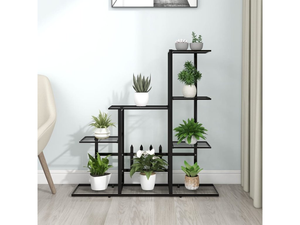 Tento stojan na kvety je vyrobený z kovu, ktorý je pevný a odolný a zaručuje dlhoročnú prevádzku. Tento stojan na rastliny poskytuje dostatok priestoru na vystavenie vašich krásnych rastlín. Okrem toho sa stojan ľahko čistí vlhkou handričkou.