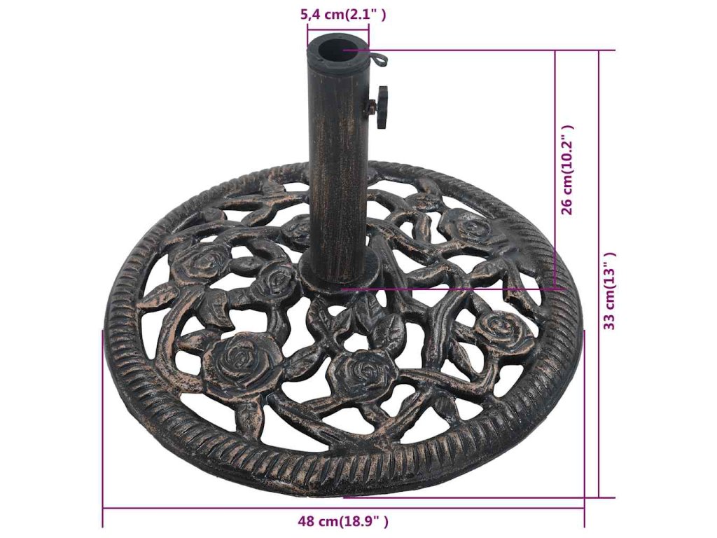 Stojan je vhodný na slnečníky s tyčou s priemerom 35, 38 alebo 48 mm. Precízne ornamenty a očarujúci motív kvetov prinesú do každej záhrady či iných vonkajších priestorov punc elegancie.