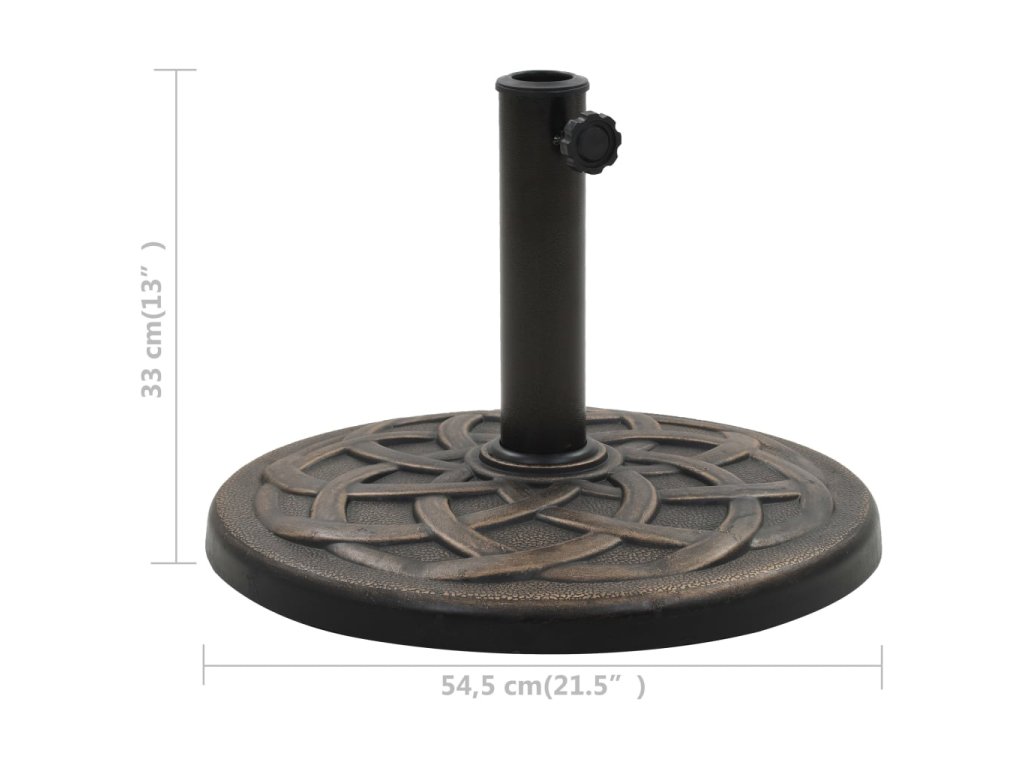 Tento vysoko dekoratívny stojan na slnečník je vyrobený z polyresinu odolného voči vplyvom počasia, a preto je ideálny pre vonkajšie použitie. Má zamykaciu kľučku na upevnenie tyče slnečníka do rúrky s priemerom 57 mm. Súčasťou balenia sú aj dva adaptéry, takže je vhodný aj pre tyče slnečníkov s priemerom 38 a 48 mm.