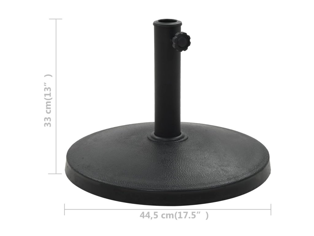 Tento vysoko dekoratívny stojan na slnečník je vyrobený z polyresinu odolného voči vplyvom počasia, a preto je ideálny pre vonkajšie použitie. Má zamykaciu kľučku na upevnenie tyče slnečníka do rúrky s priemerom 57 mm. Súčasťou balenia sú aj dva adaptéry, takže je vhodný aj pre tyče slnečníkov s priemerom 38 a 48 mm.