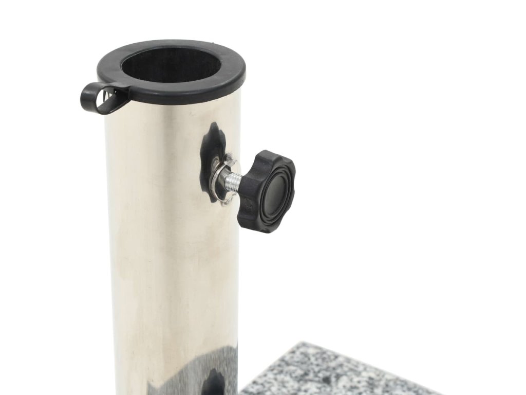 Tento podstavec na slnečník je vyrobený z pevnej žuly s hmotnosťou 10 kg, a preto je mimoriadne stabilný a postará sa o to, aby slnečník držal na mieste aj vo veternom počasí. Stojan má 2 uzamykacie skrutky, ktoré udržujú tyč slnečníka na svojom mieste. V balení sa nachádza jeden adaptér, vďaka ktorému je držiak na slnečník vhodný na tyče s priemerom 38/48 mm.