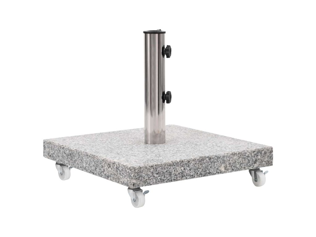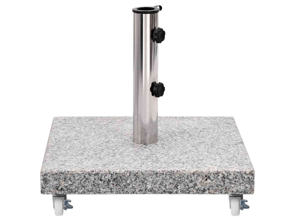 Tento podstavec na slnečník je vyrobený z pevnej žuly s hmotnosťou 30 kg, a preto je mimoriadne stabilný a postará sa o to, aby slnečník držal na mieste aj vo veternom počasí. Stojan má 2 uzamykacie skrutky, ktoré udržujú tyč slnečníka na svojom mieste. V balení sa nachádza jeden adaptér, vďaka ktorému je držiak na slnečník vhodný na tyče s priemerom 38/48 mm. Vďaka 4 otočným kolieskam môžete slnečník jednoducho premiestniť.