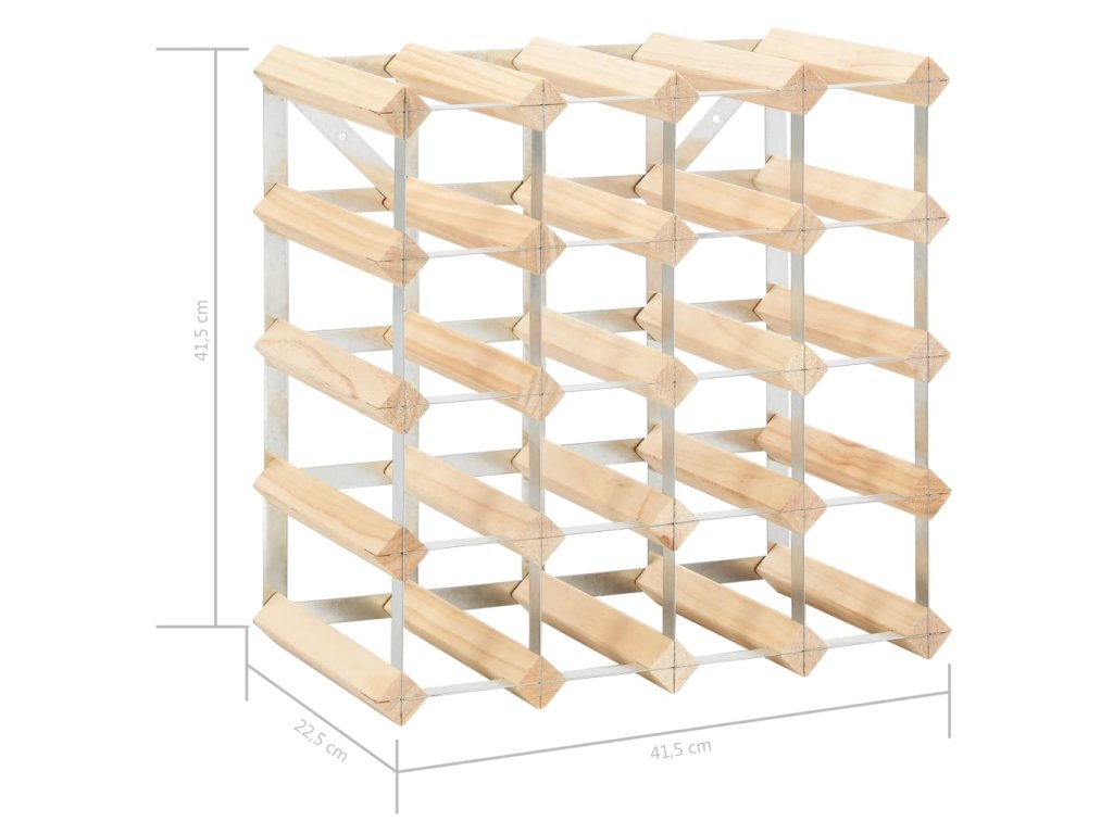 Do tohto stojanu na víno sa zmestí až 20 fliaš vína. Jeho jednoduchý a čistý dizajn dodá vášmu obytnému priestoru nádych rustikálneho kúzla. Bude to aj skvelý darček pre vašich priateľov a známych, ktorí milujú víno. Je vyrobený z pozinkovanej ocele a masívneho dreva a preto je extrémne odolný! Vďaka pribalenému montážnemu materiálu sa stojan na víno jednoducho montuje.