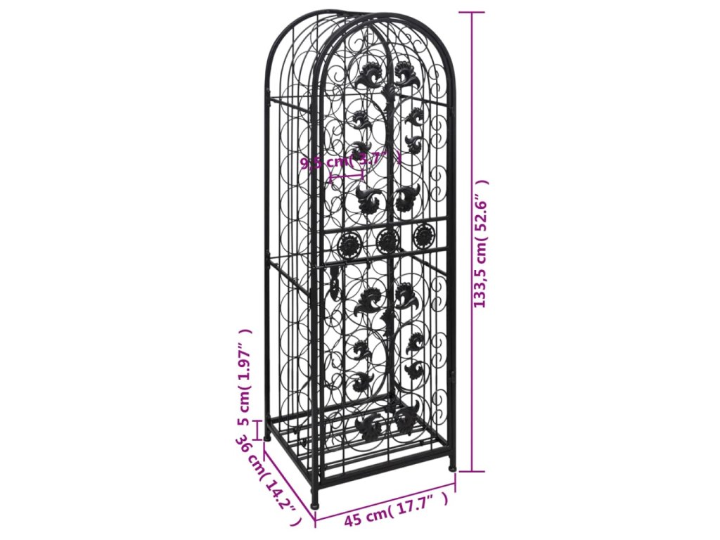 Tento samostatne stojaci stojan na víno predstavuje pútavý doplnok do akejkoľvek miestnosti. Je vyrobený z kovaného železa a je kompletne ošetrený práškovou povrchovou úpravou, vďaka čomu nezhrdzavie a vydrží po celé generácie!
