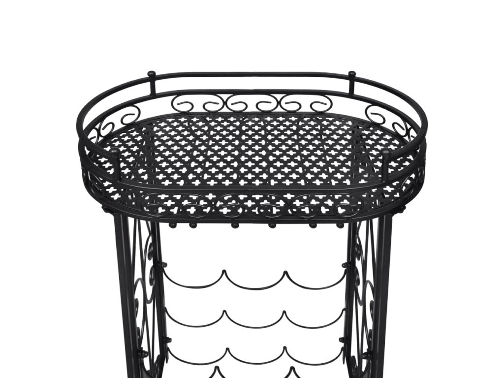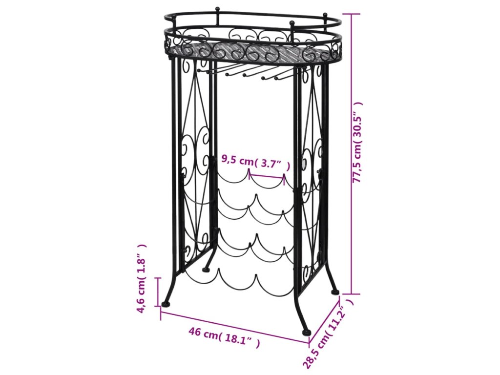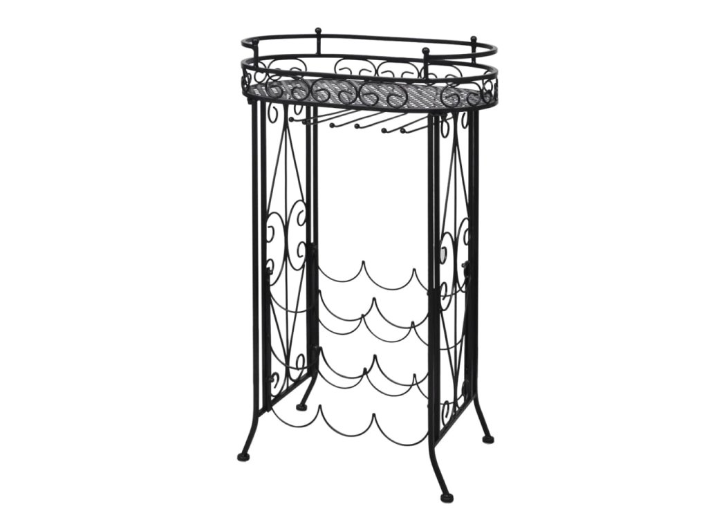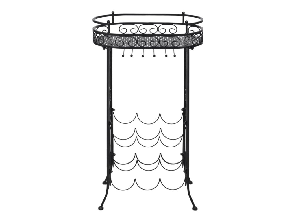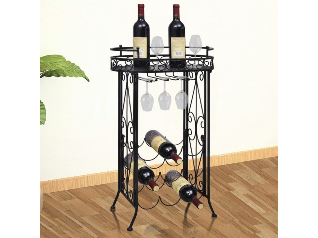 Tento stojan na víno má 9 miest na fľaše. Dodáva sa spolu s podnosom so zábradlím, a tak poslúži aj ako servírovací stolík. Pod stolovou doskou sa nachádza niekoľko háčikov, kam si môžete zavesiť vínové poháre. Tento stojan na víno sa preto stane skvelým doplnkom k vášmu jedálenskému stolu. Má elegantný a vkusný štýl, ktorý do vášho domova vnesie romantickú atmosféru. Tento výrobok predstavuje skvelý darček pre všetkých vašich priateľov a známych, ktorí zbožňujú víno.