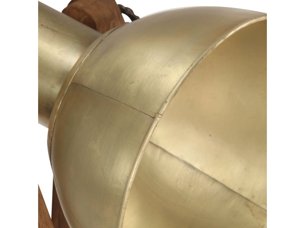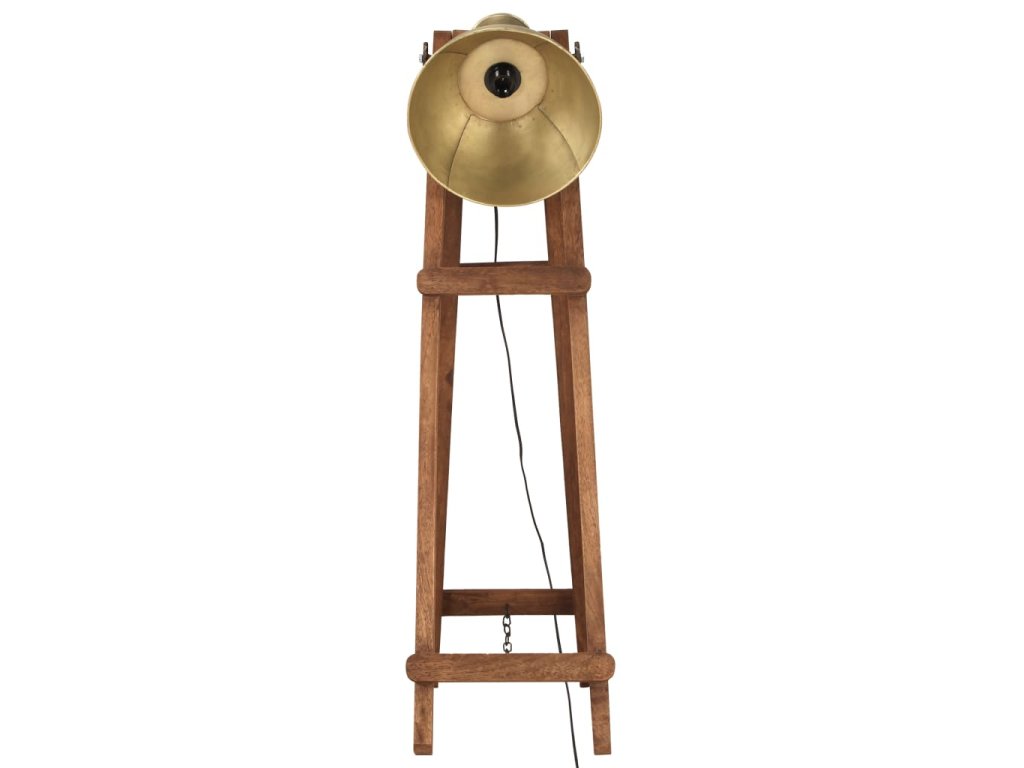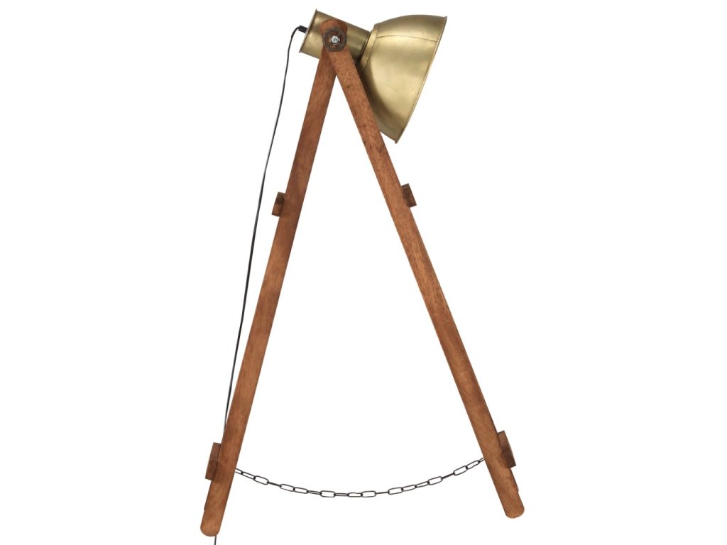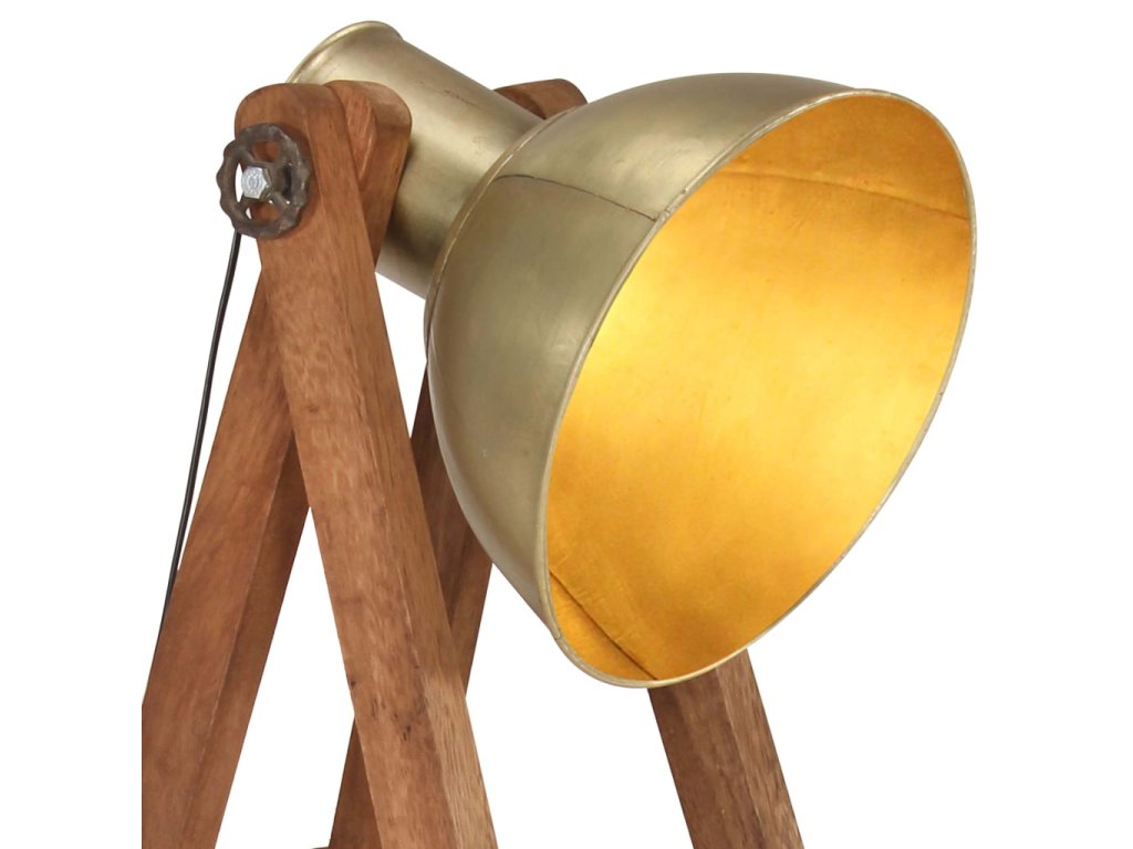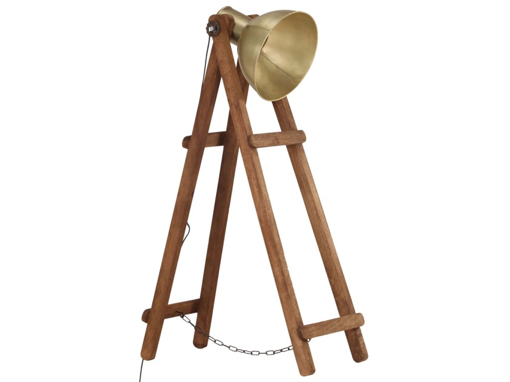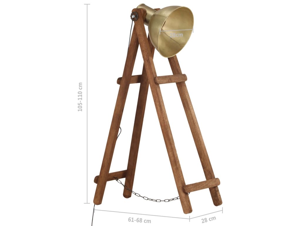 Železné tienidlo s mosadznou povrchovou úpravou šíri teplé a atmosférické svetlo. Rám z masívneho mangovníkového dreva s hnedou zvetranou povrchovou úpravou sa perfektne hodí do vidieckej a priemyselnej interiéru. Uhol lampy sa dá nastaviť, aby sa hodila na rôzne použitia. Tienidlo má objímku E27 pre žiarovku s maximálnym výkonom 25 W. Môžete si vybrať a nainštalovať žiarovku E27 s rôznymi farbami svetla, ktoré vytvárajú atmosféru relaxácie a pokoja. Pre jednoduché zapnutie a vypnutie slúži podlahový spínač.