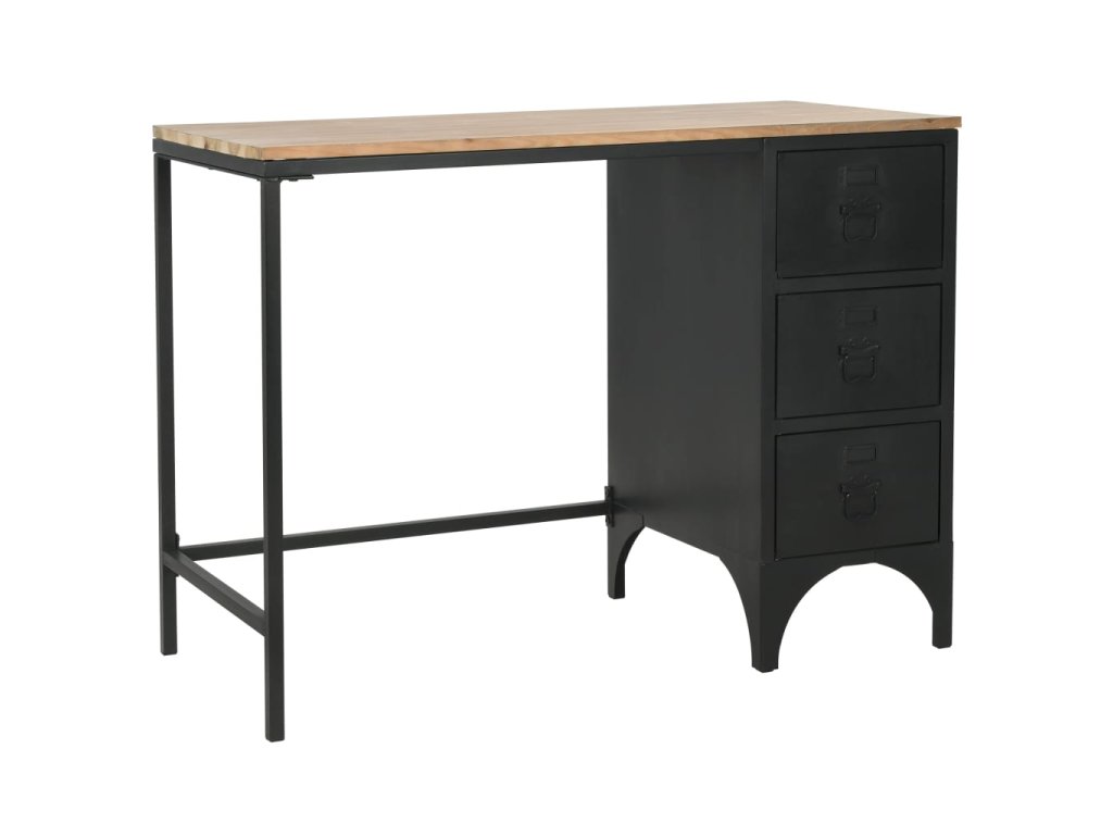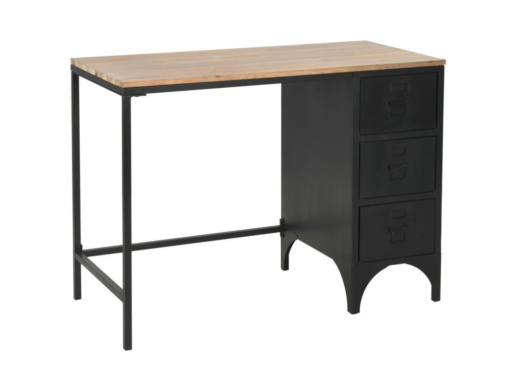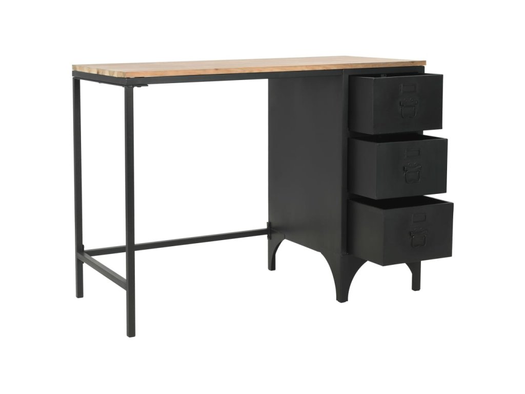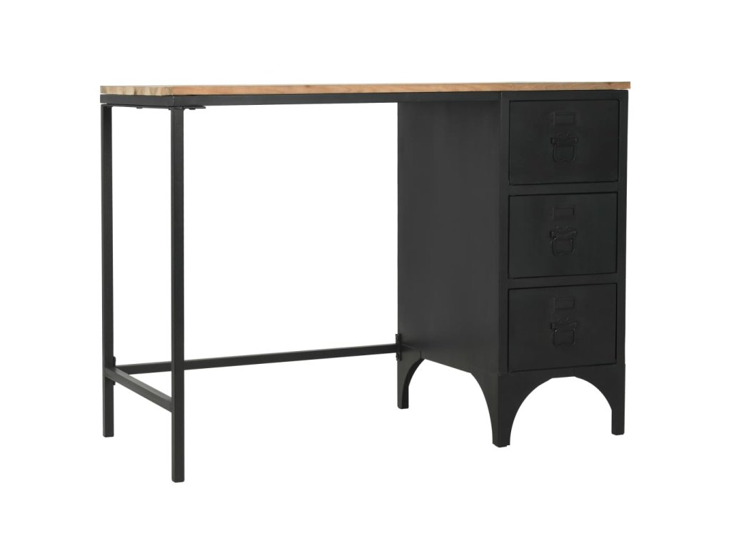 Písací stôl sa skladá z pevného oceľového rámu a dosky z masívneho jedľového dreva, vďaka čomu je skutočne robustný a trvácny. Stôl má 3 zásuvky, ktoré poskytujú dostatok priestoru na úhľadné uloženie dokumentov, papierov a iných kancelárskych potrieb, ktoré potrebujete mať na dosah ruky. Dizajn oceľového rámu dodáva stolu priemyselný vzhľad. Stôl sa jednoducho montuje.