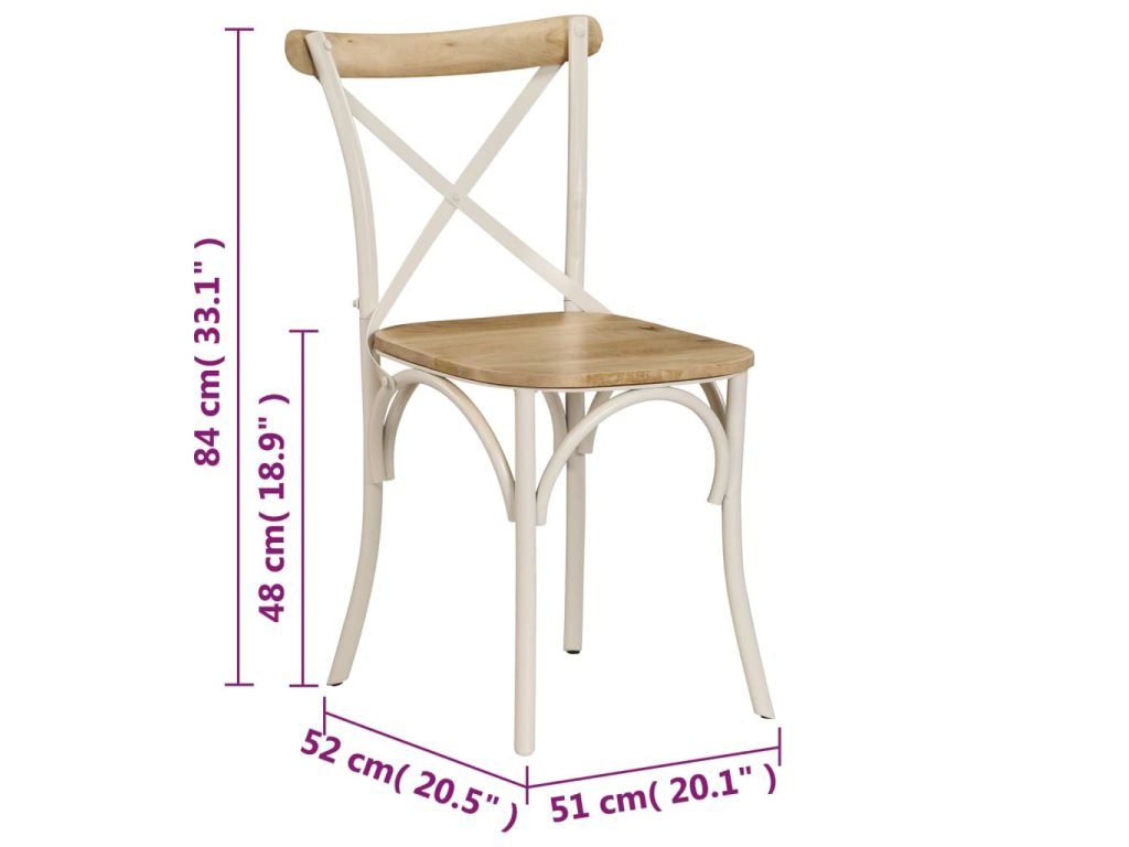 Táto sada pozostáva z 2 jedálenských stoličiek v starožitnom štýle, ktoré sú vyrobené z mangového dreva a ktoré vo vašej jedálni zaručene upútajú nejeden pohľad. Oceľový rám stoličkám dodáva mimoriadnu stabilitu a pevnosť.