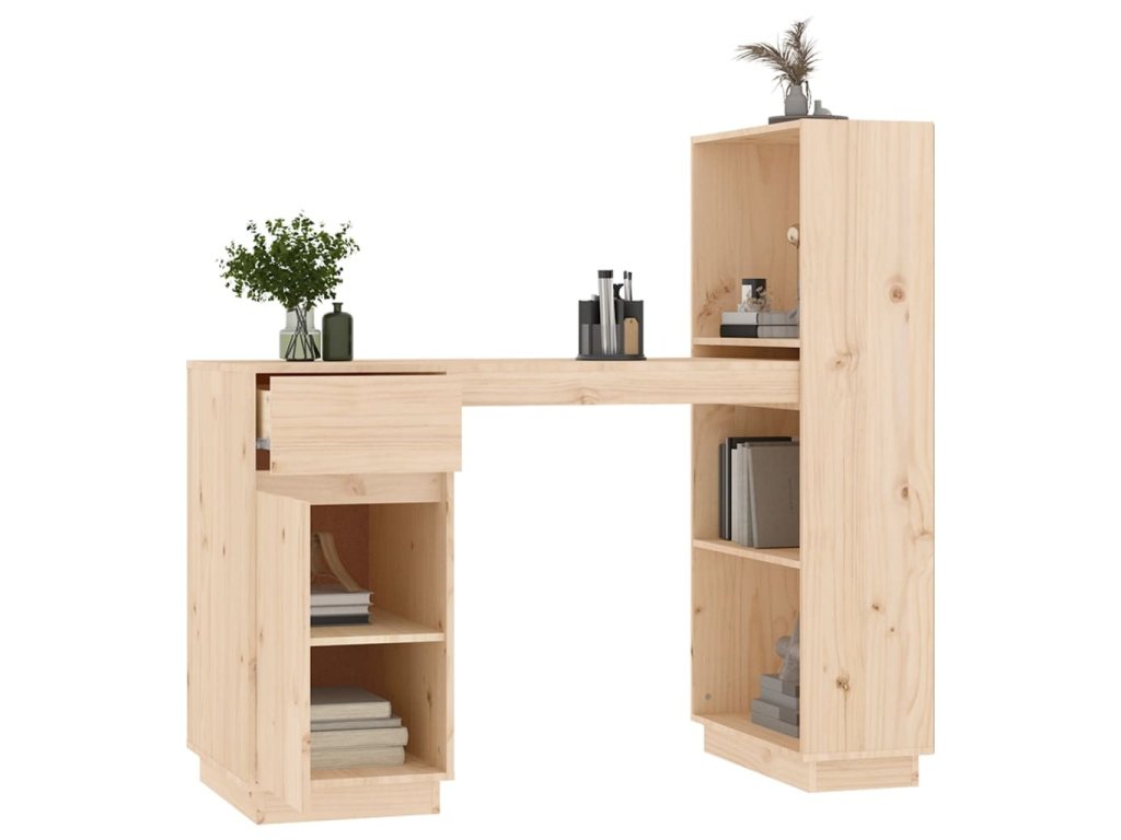 - Masívne borovicové drevo: Tento kancelársky stolík je vyrobený z masívneho borovicového dreva. Masívne borovicové drevo je krásny prírodný materiál. Borovicové drevo má rovnú štruktúru a uzly dodávajú materiálu jeho typický rustikálny vzhľad.