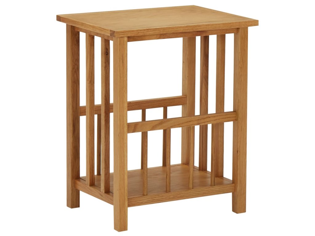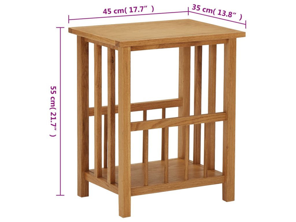 Stolík na časopisy je odborne vyhotovený z dubového masívu a MDF, a preto je skutočne trvácny a praktický. Vďaka svojmu kompaktnému dizajnu stolík nezaberie veľa miesta a dá sa jednoducho premiestniť. Pevná vrchná doska je ako stvorená na vystavenie rôznych dekoračných predmetov, ako napríklad rámikov s fotkami či dokonca kvetov v kvetináči. Okrem toho má jednu poličku, ktorá je ako stvorená na odkladanie novín a časopisov.