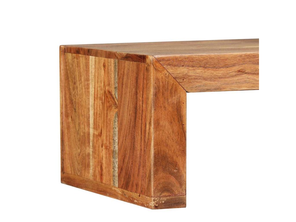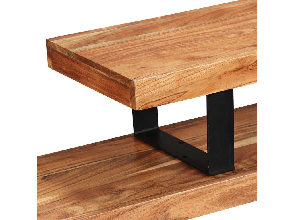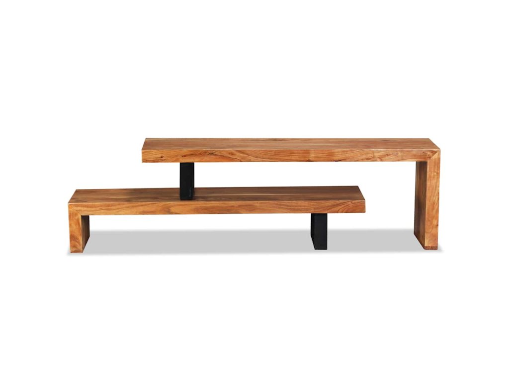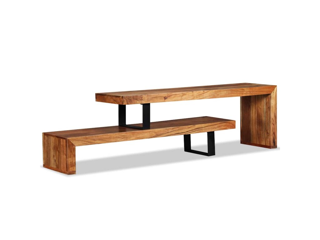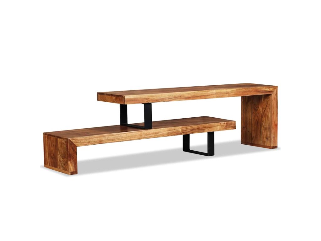 Stolík pod TV bol ručne vyrobený z masívneho akáciového dreva, ktoré je stabilné, odolné a krásne. Remeselné spracovanie mu dodáva veľkolepý retro štýl. Každý krok procesu výroby sa vykonáva s najväčšou starostlivosťou, či už ide o leštenie alebo lakovanie. Vďaka remeselnému spracovaniu a štruktúre dreva je každý kus nábytku jedinečný a trochu odlišný od ďalších kusov. 2 poličky v rôznych úrovniach poskytujú dostatok priestoru na uskladňovanie multimediálnych zariadení, nosičov médií a akýchkoľvek iných predmetov, ktoré chcete vystaviť alebo mať na dosah ruky. Horná časť tohto stolíka sa dá odstrániť alebo umiestniť v rôznych polohách, čím môžete upravovať jeho šírku.
