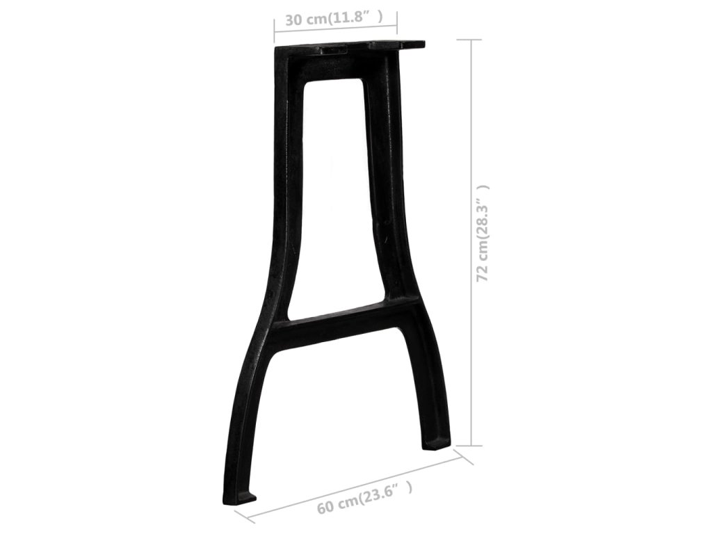 Tieto stolové nohy sú vyrobené z pevnej liatiny, ktorá bola leštená, natieraná a lakovaná, aby sa zvýšila jej trvácnosť. Vďaka konštrukcii s rámom v tvare písmena A sa môže na tieto robustné stolové nohy položiť aj ťažká stolová doska. Vopred vyvŕtané otvory na montážnej doske umožňujú rýchlu a jednoduchú montáž nôh k doske stola.
