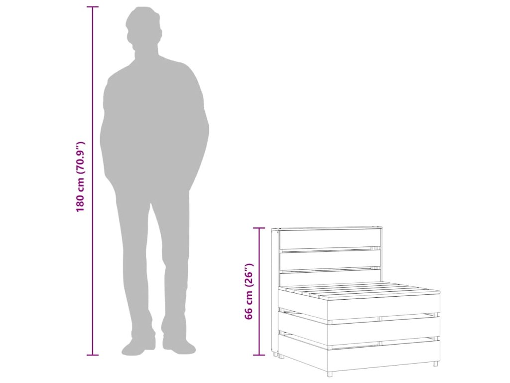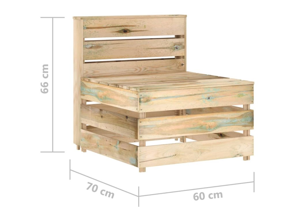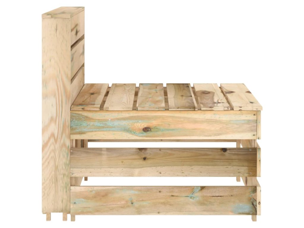 Stredná pohovka je vyrobená z impregnovaného borovicového dreva, ktoré je odolné proti hnilobe a veľmi trvácne, takže je mimoriadne vhodná na vonkajšie použitie. Táto vonkajšia pohovka má pevnú konštrukciu a vyžaduje si len malú údržbu. Navyše, táto drevená stredová sedacia súprava má tiež modulárnu konštrukciu, takže je úplne flexibilná a jednoducho sa premiestňuje, aby sa hodila do každého zariadenia. Môžete ju skombinovať s inými modulárnymi segmentmi, ktoré sú k dispozícii v našej ponuke, a vytvoriť si tak svoje vlastné konfigurácie záhradného nábytku!
