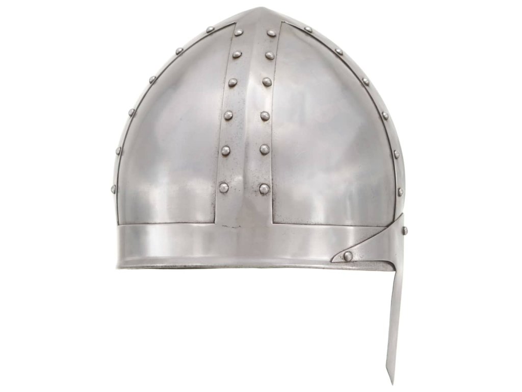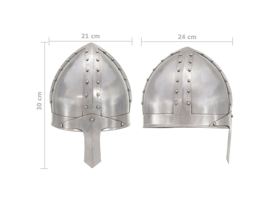 Pancierová prilba je presnou replikou pôvodnej európskej vojenskej prilby s nánosníkom. Bola vyrobená z leštenej ocele s 18 gauge a kombinuje starožitný štýl a odolný materiál. Vzniká tak pútavá prilba, ktorá dokonale ladí s vašim rytierskym outfitom. Táto normanská prilba je navrhnutá tak, aby ochránila nos. Okrem toho sa jedná aj o pútavý výstavný kúsok.