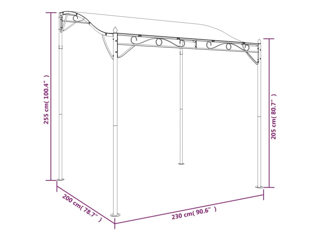 - Zaoblený vrchný dizajn: Zakrivený tvar záhradného altánku poskytuje lepšie chránenú plochu a umožňuje jednoduchý odtok vody v prípade dažďa.