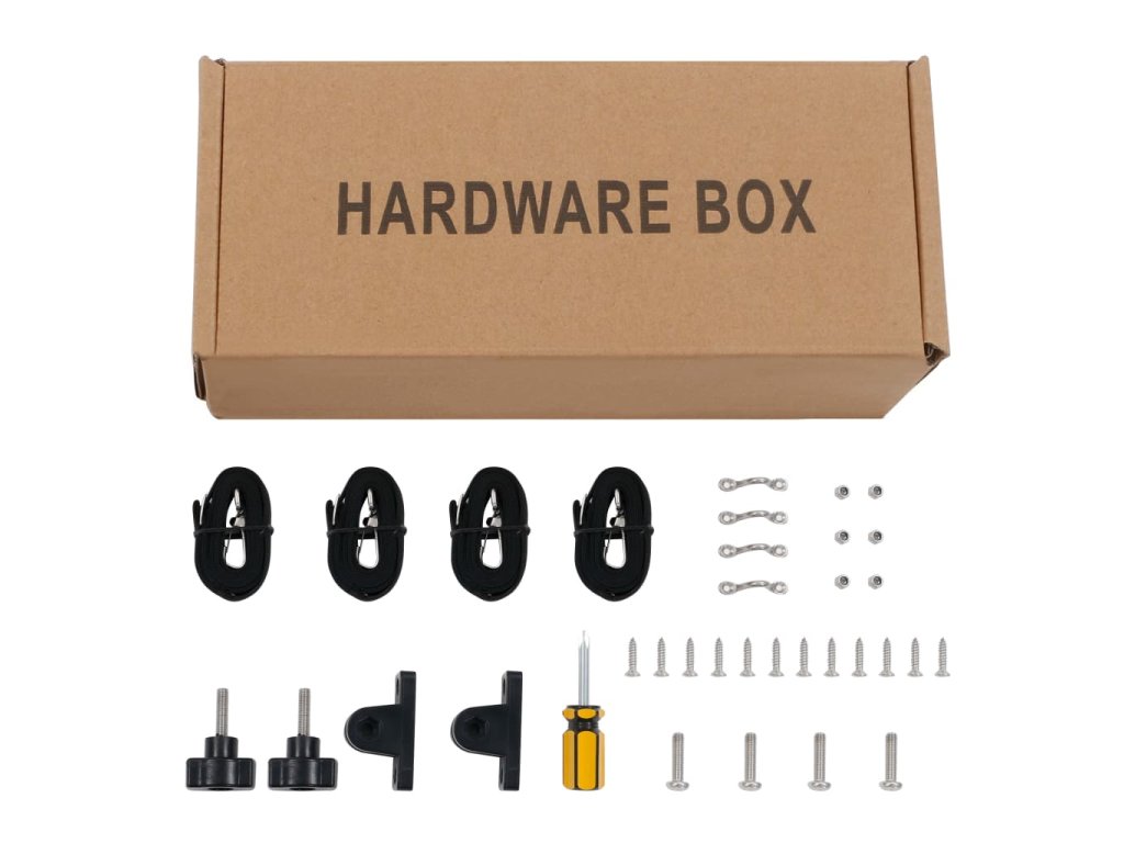 - Montážne súčiastky (háčiky s očkami, montážne matice a úchytky sú vyrobené z nehrdzavejúcej ocele 316 vhodnej na používanie v námorníctve a ostatné súčiastky sú vyrobené z nehrdzavejúcej ocele 304)