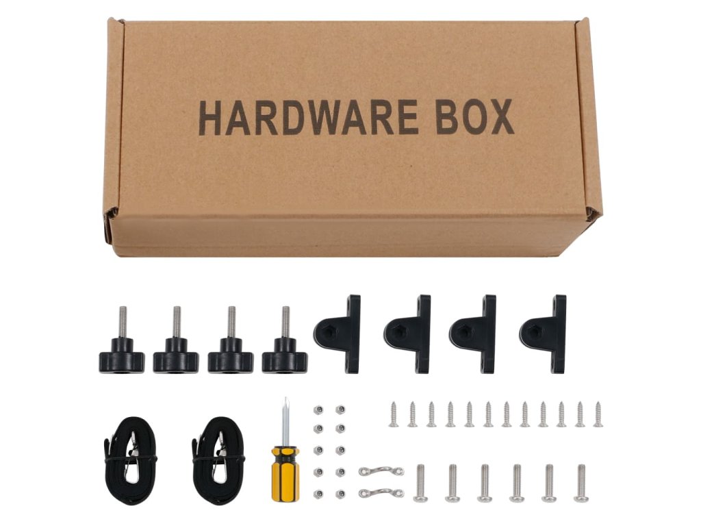 - Montážne súčiastky (háčiky s očkami, montážne matice a úchytky sú vyrobené z nehrdzavejúcej ocele 316 vhodnej na používanie v námorníctve a ostatné súčiastky sú vyrobené z nehrdzavejúcej ocele 304)