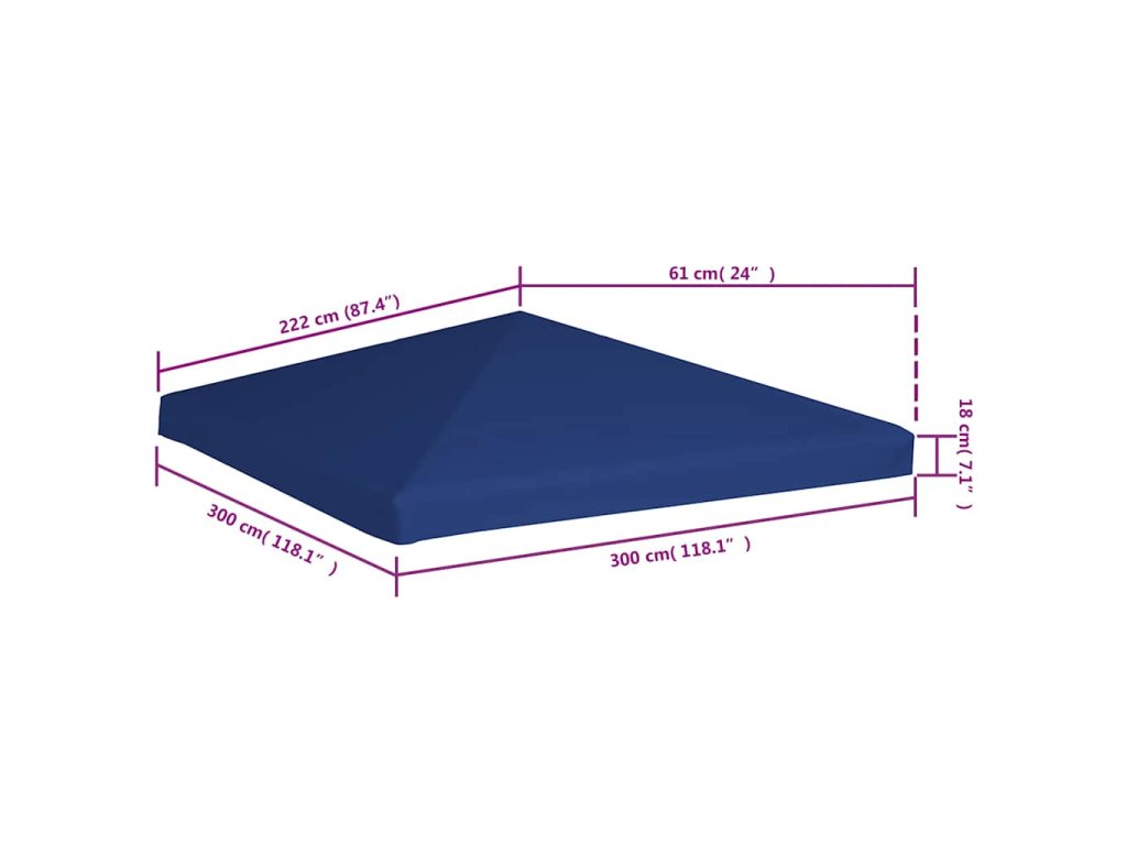 Tento náhradný baldachýn je vyrobený z trvácnej polyesterovej látky s vrstvou PVC, vďaka čomu je vodovzdorný. Strieška na altánok poskytuje ochranu pred slnkom, slabým dažďom a inými poveternostnými podmienkami. Strieška má vystužené rohy pre dlhšiu trvácnosť.