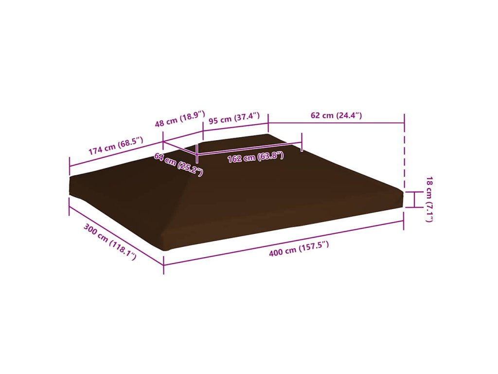 Tento náhradný baldachýn je vyrobený z trvácnej polyesterovej látky s vrstvou PVC, vďaka čomu je vodoodolný. Strieška na altánok poskytuje ochranu pred slnkom, dažďom a inými nepriaznivými poveternostnými podmienkami. Strieška má vystužené rohy pre dlhšiu trvácnosť.