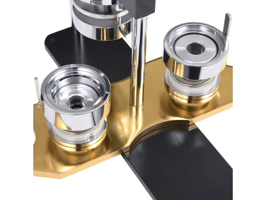 Stroj na výrobu odznakov sa dodáva spolu so sadou matríc určených na výrobu 37 mm odznakov. Otočná základňa umožňuje pohybovať matricami presnejšie a rýchlejšie. S textúrovanou rukoväťou sa dobre pracuje a na vytvorenie odznaku tak stačí len mierna sila. Zariadenie sa preto veľmi ľahko ovláda. V balení navyše nájdete aj okrúhlu rezačku, aby ste mohli podľa potreby upraviť priemer rezu.