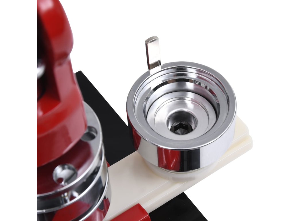 Stroj na výrobu odznakov sa dodáva spolu so sadou matríc určených na výrobu 58 mm odznakov. Dizajn so zarážkou zaručuje spoľahlivé zarovnanie hornej a dolnej matrice. Posuvná základňa umožňuje presnejšiu a rýchlejšiu prácu. S textúrovanou rukoväťou sa dobre pracuje a na vytvorenie odznaku tak stačí len mierna sila. Zariadenie sa preto veľmi ľahko ovláda. V balení navyše nájdete aj okrúhlu rezačku, aby ste mohli podľa potreby upraviť priemer rezu.