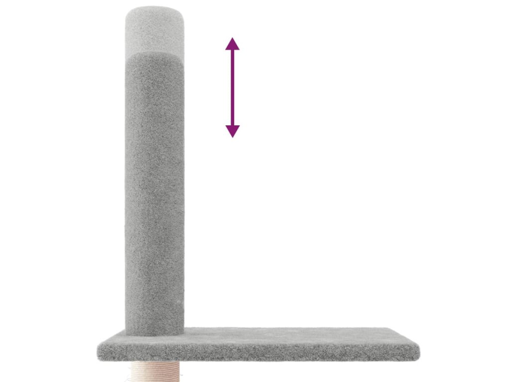 - Komplexná veža pre mačky: Viacúrovňový nábytok pre mačky je navrhnutý s 2 domčekmi, 1 ležadlom a plošinami, ktoré vašim mačkám poskytujú dokonalé miesto, kde môžu liezť, sedieť, škrabať sa, schovávať sa a tiež relaxovať.