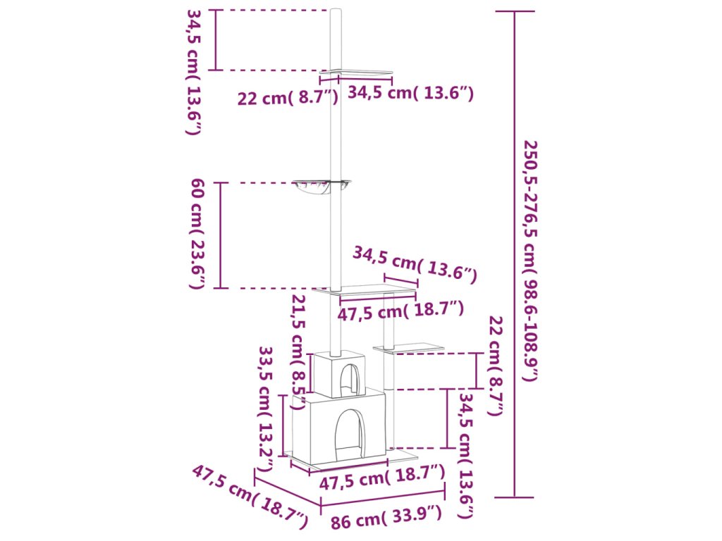 - Komplexná veža pre mačky: Viacúrovňový nábytok pre mačky je navrhnutý s 2 domčekmi, 1 ležadlom a plošinami, ktoré vašim mačkám poskytujú dokonalé miesto, kde môžu liezť, sedieť, škrabať sa, schovávať sa a tiež relaxovať.