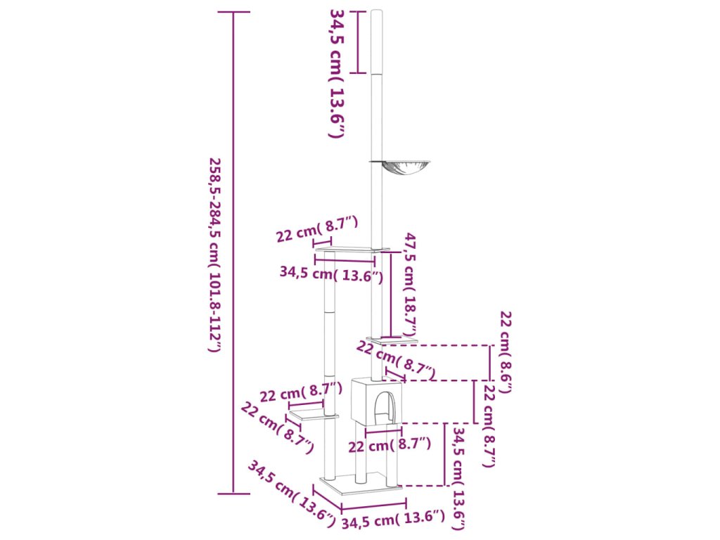 - Rozmery: 34,5 x 34,5 x (258,5-284,5) cm (D x Š x V)